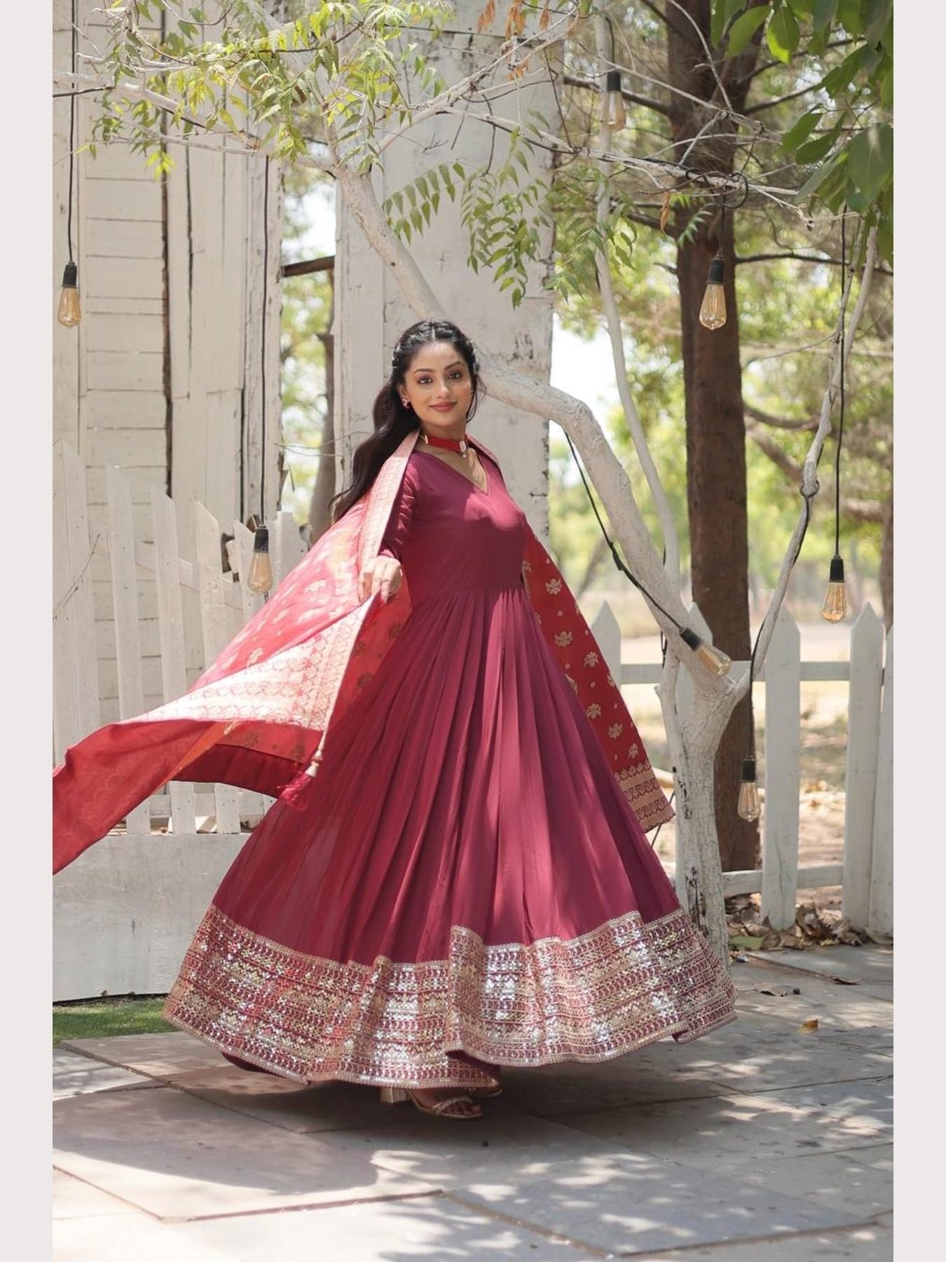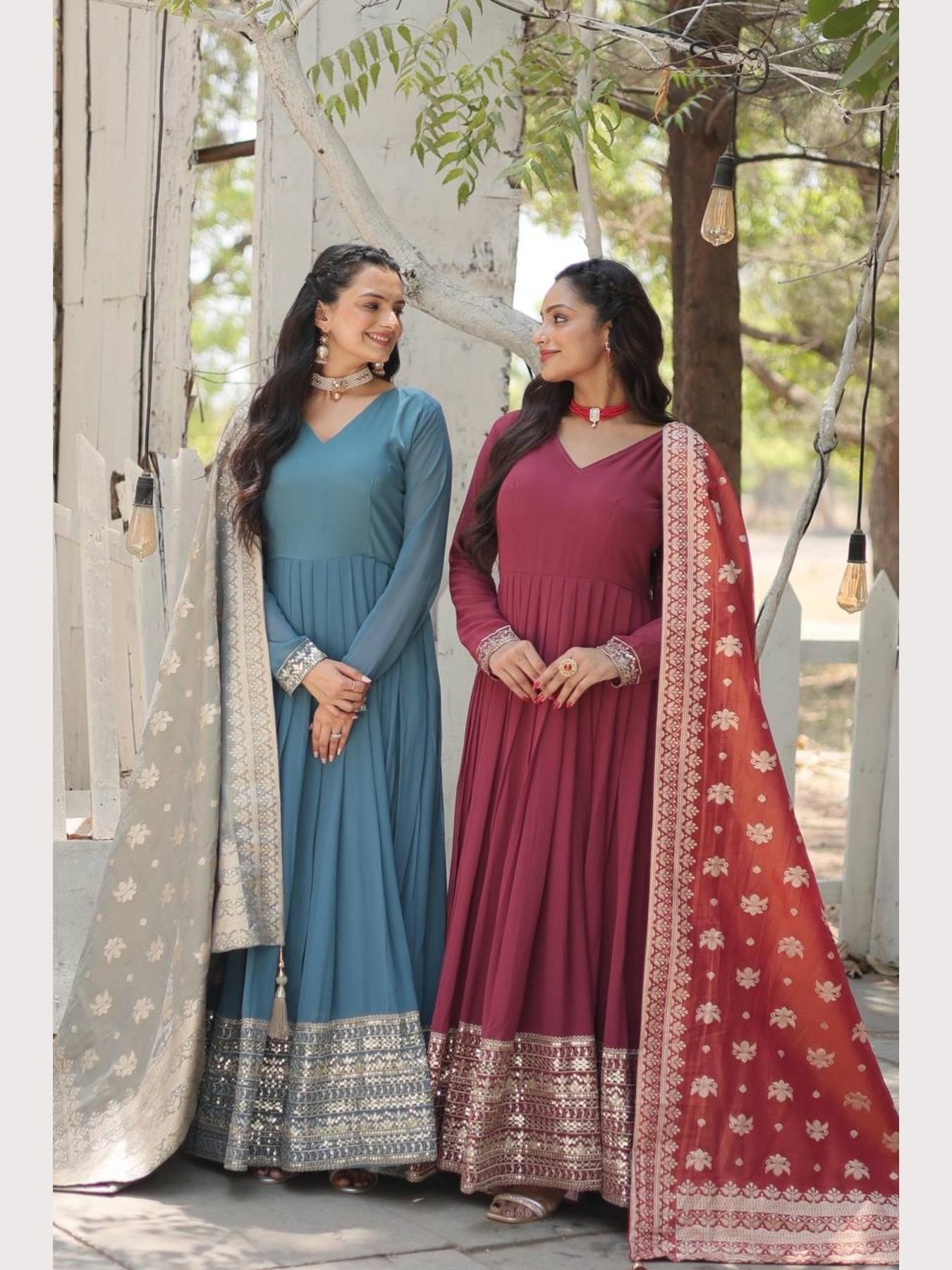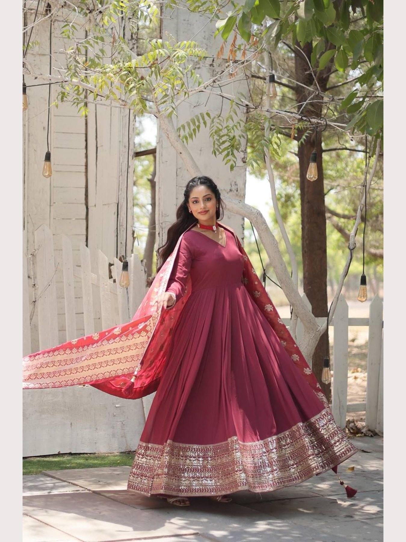 Full Sleeves With Sequence Embroidered Work Gown With Dupatta