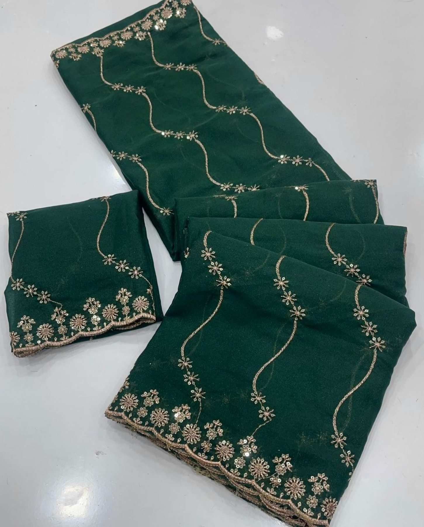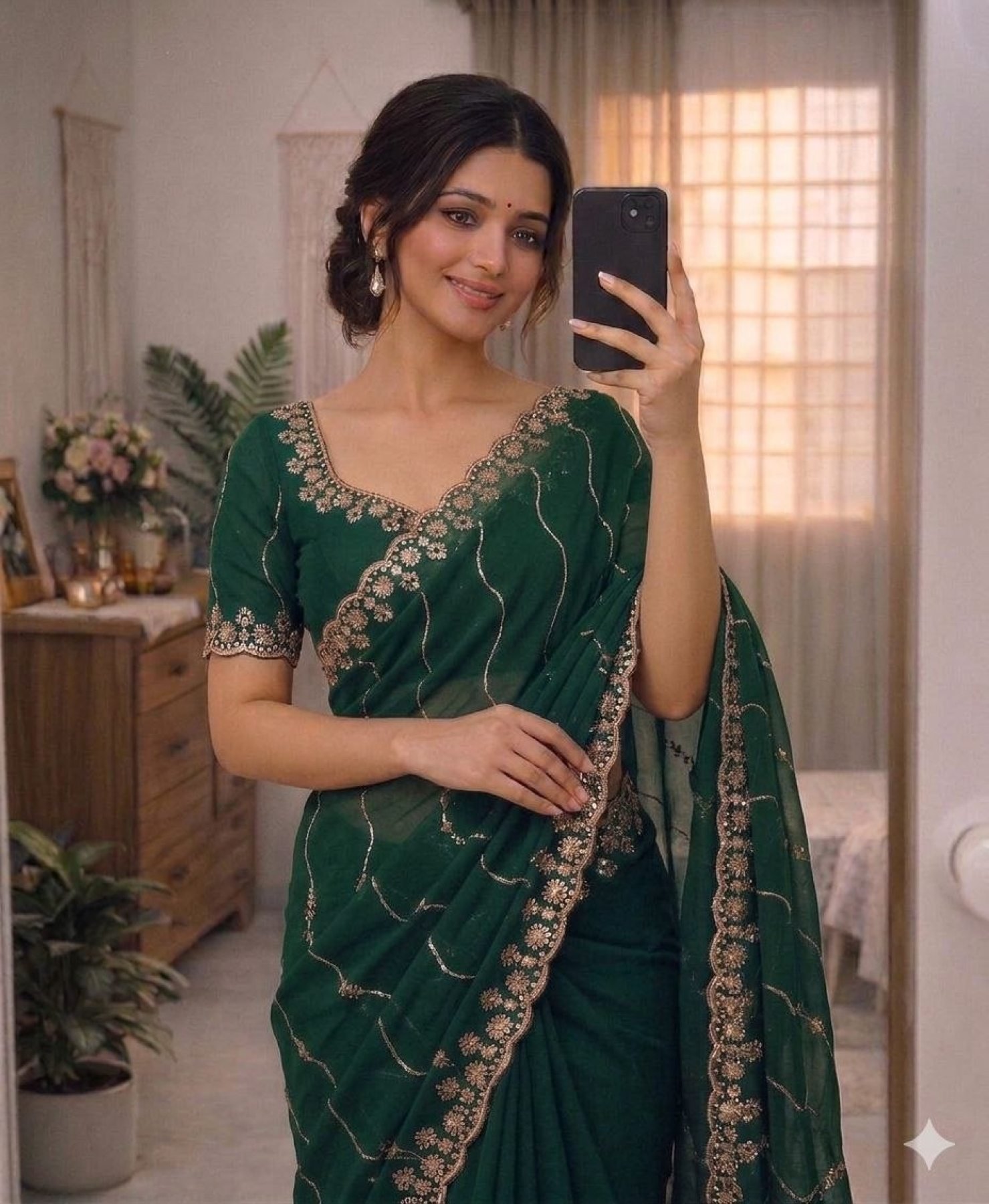 Futuristic Green Star Georgette Saree with All Over Sequins Embroidery Work
