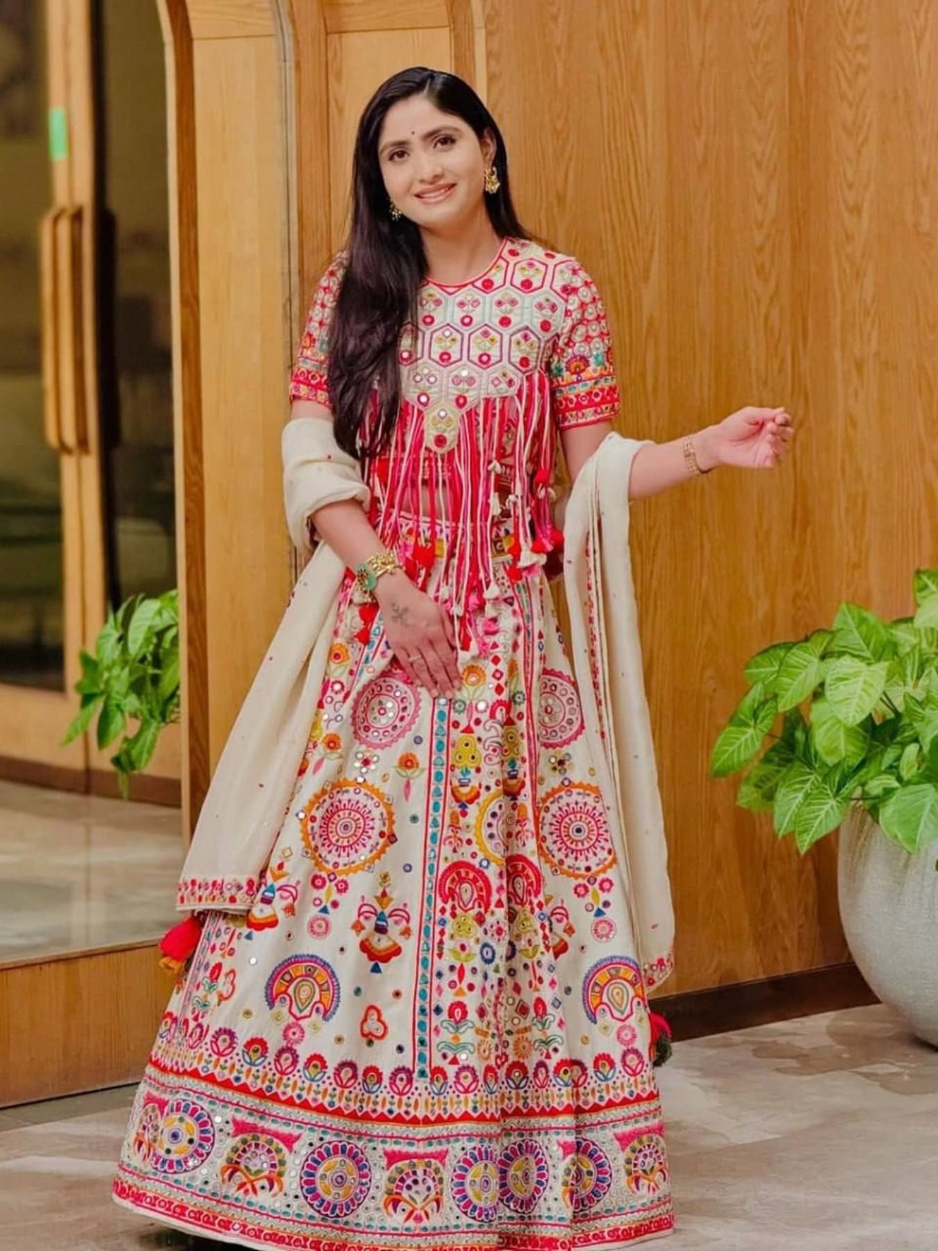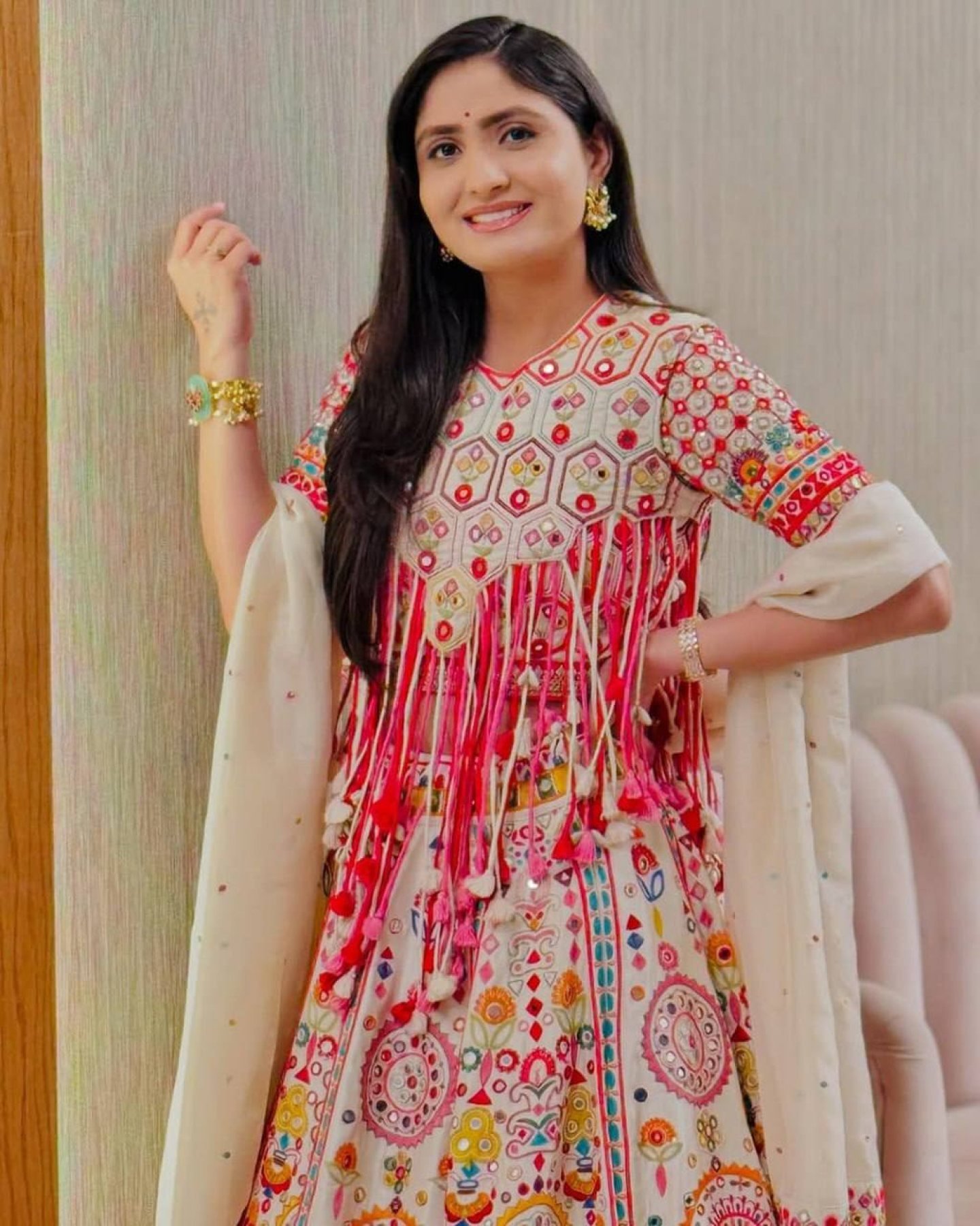 Work: Fancy Digital Print & Real Mirror Work with Fancy Latkan Lace