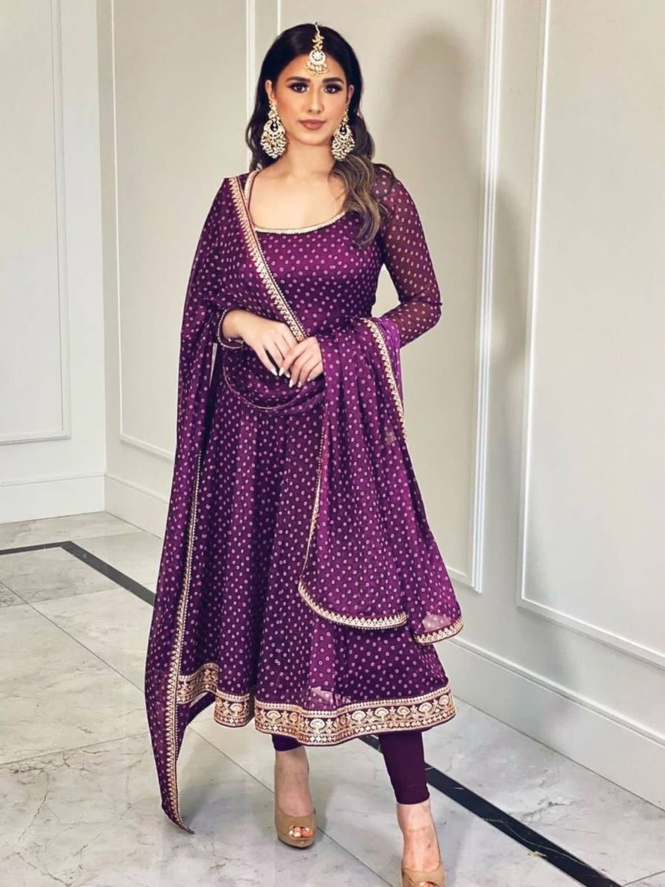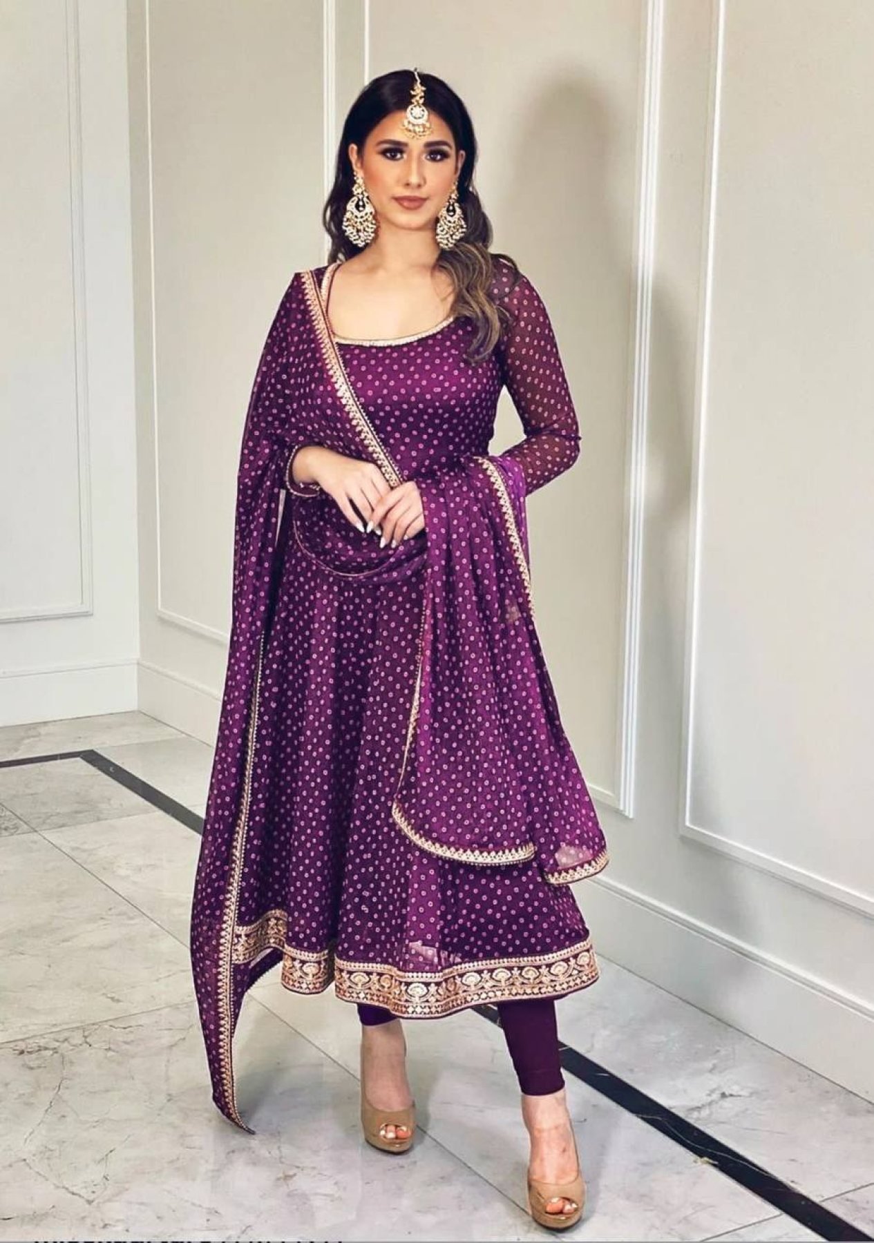 Georgette Purple Anarkali With Dupatta For Festive, Party Wear, Reception