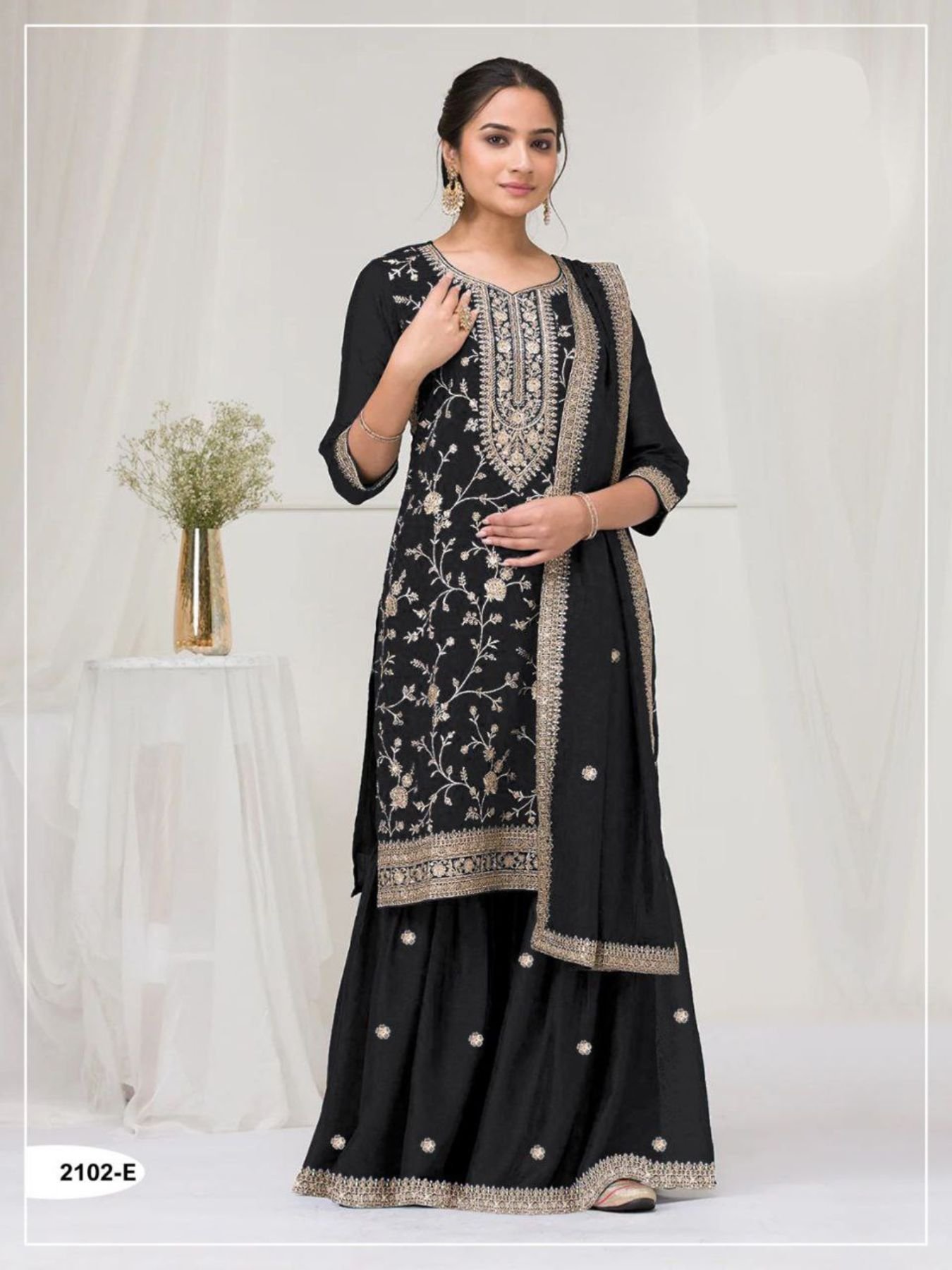 Paired with an embroidered Vichitra dupatta and unstitched bottom, ideal for boutiques, resellers, and wholesale export buyers.