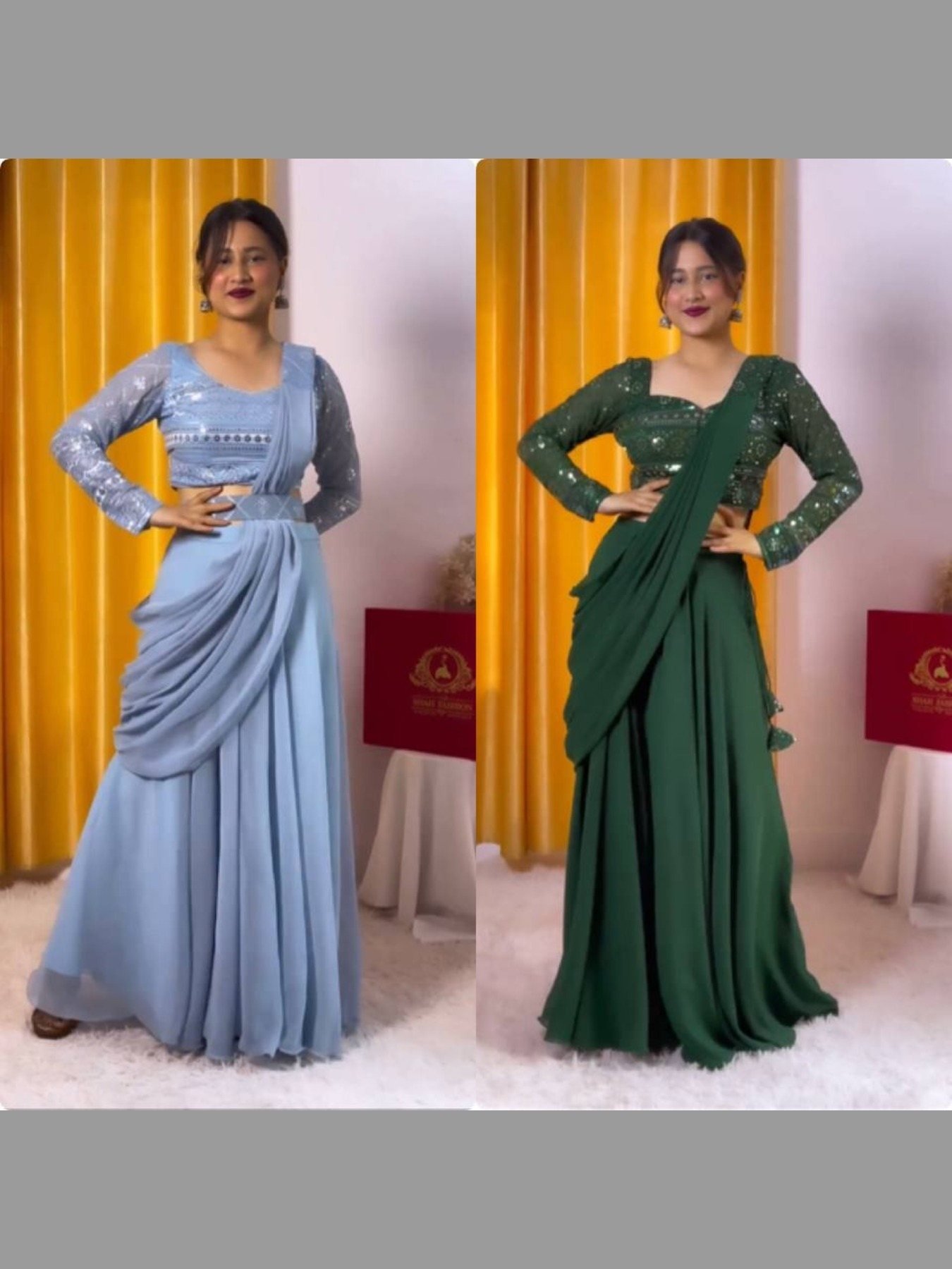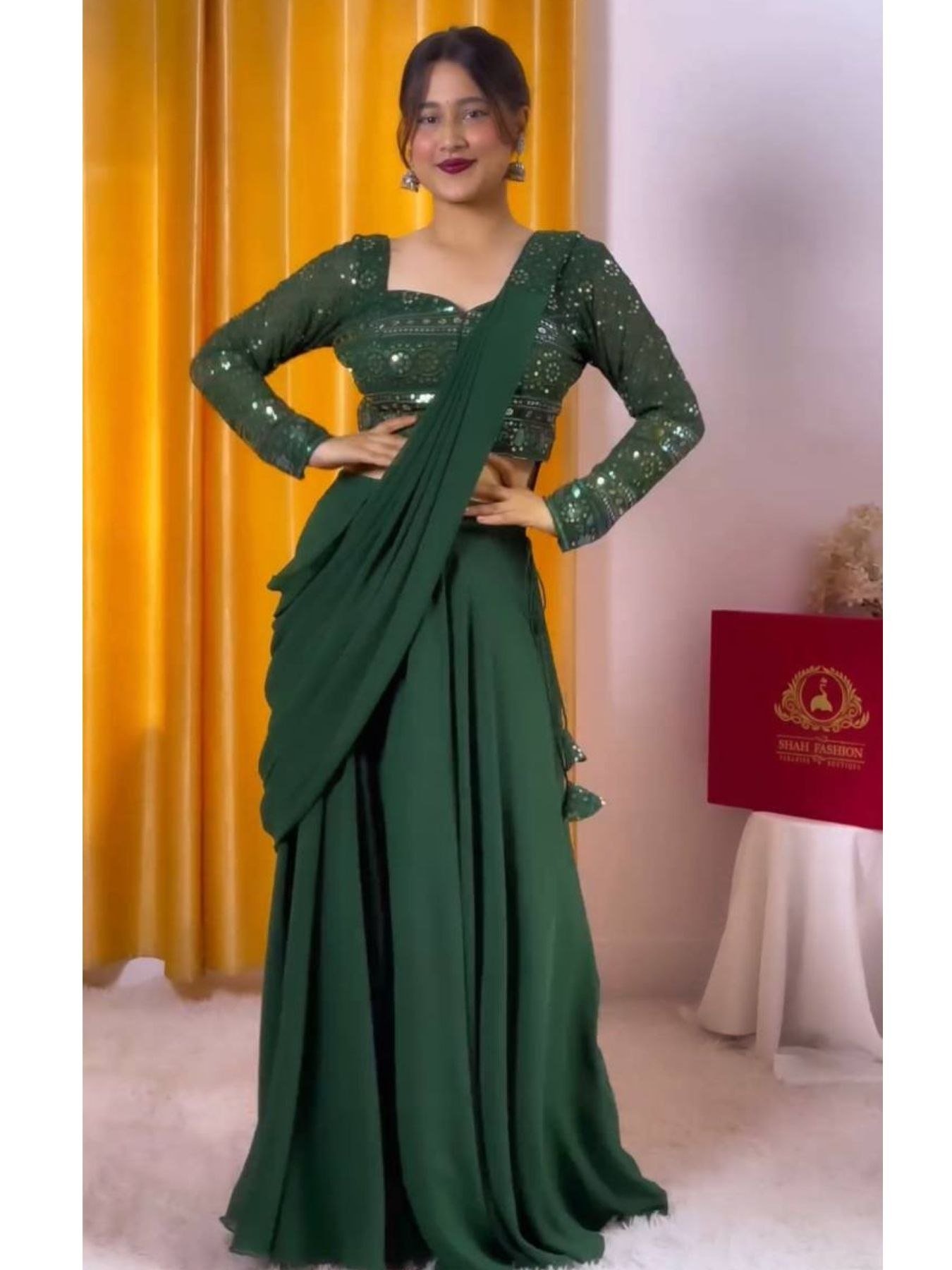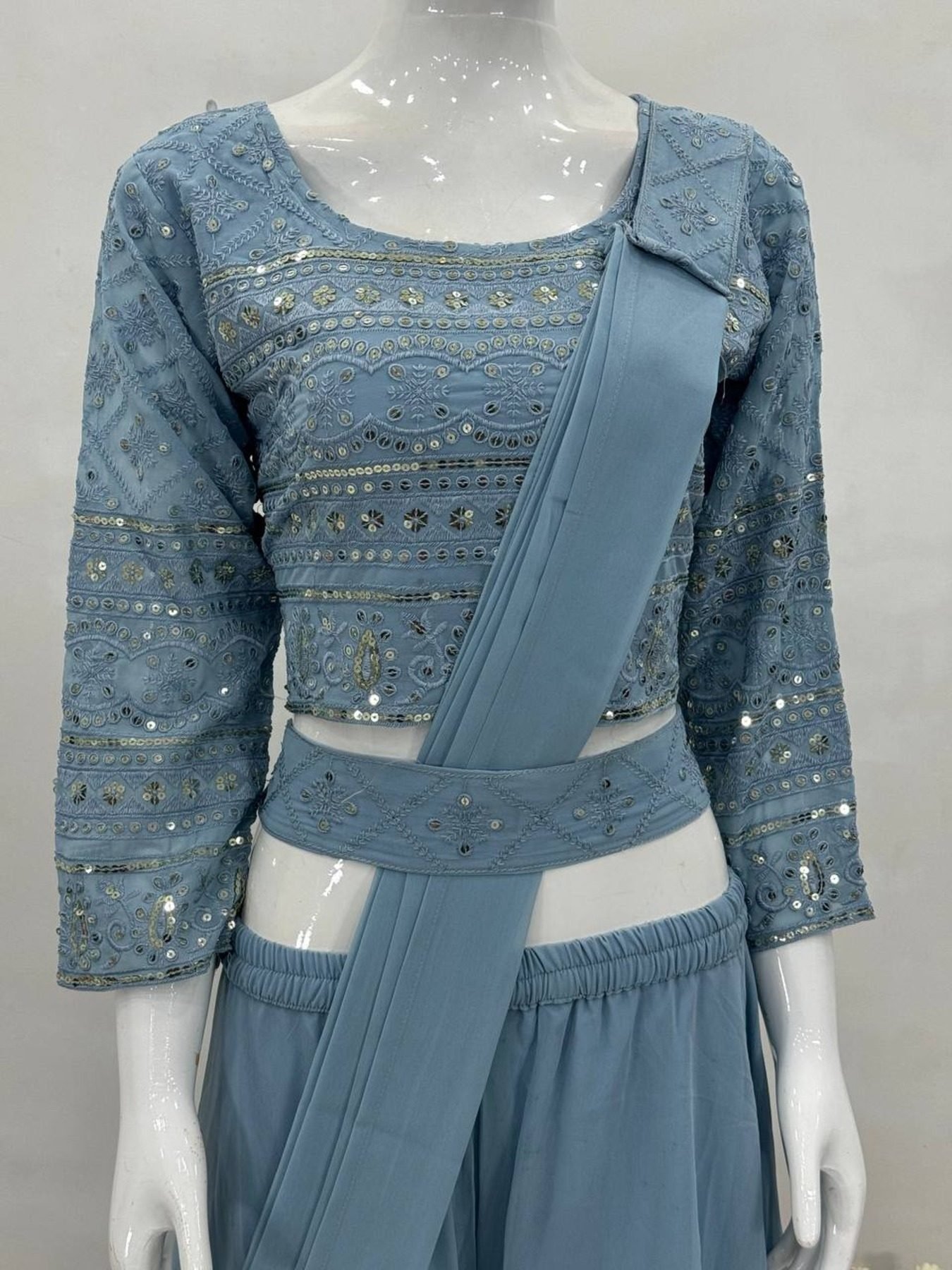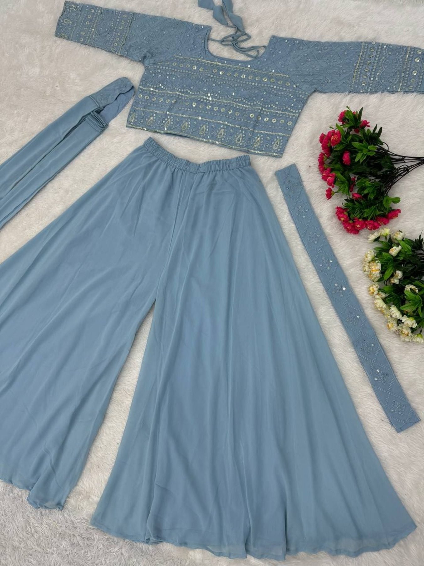 Glamorous Look Party Wear Georgette Fabric 3 Pcs Set With Belt