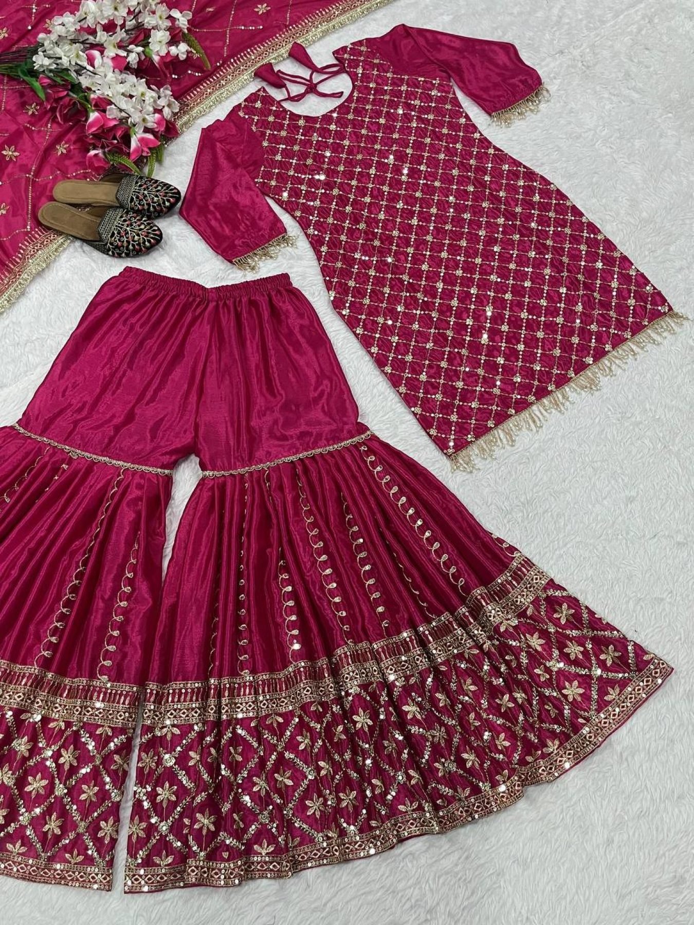 Glamorous Ready To Wear Heavy Chinnon Silk Sharara Suit Set with 5mm Sequence Embroidery Dupatta