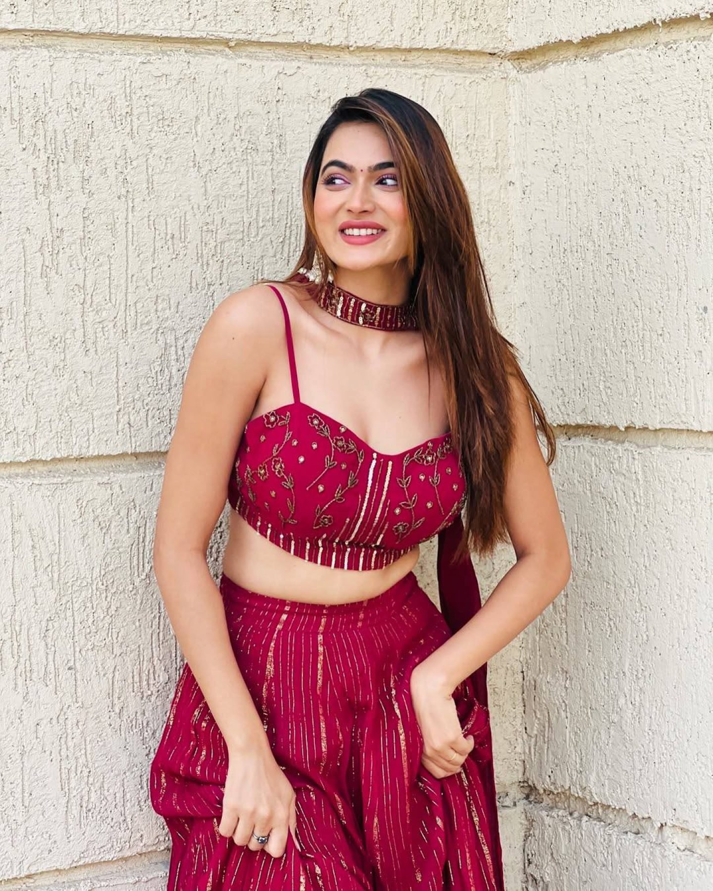 Glamorous Red Georgette Lehenga Set with Sequins Dori Work and Dupatta