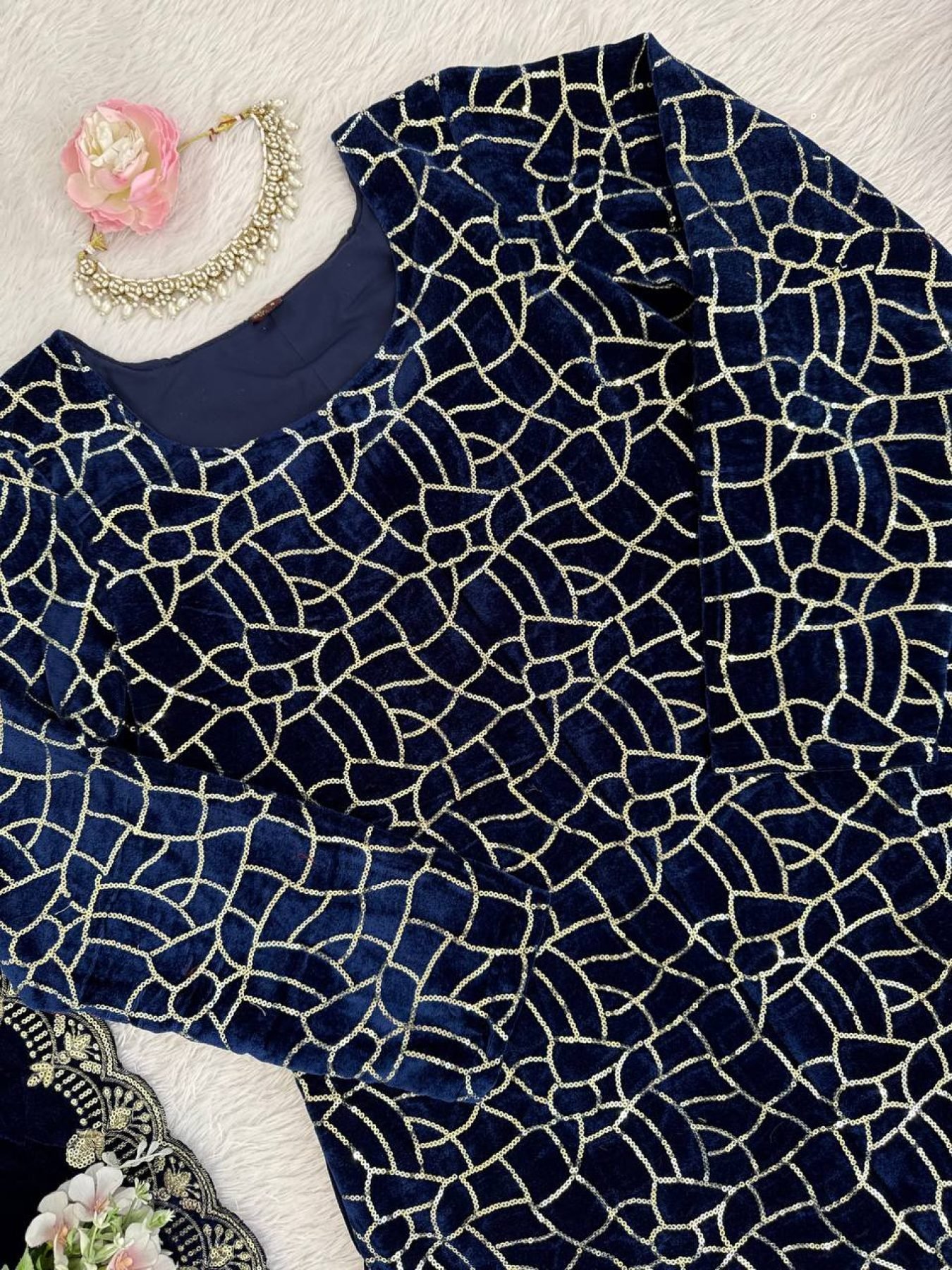 This premium viscose velvet suit set is crafted with rich thread and sequence embroidery for an elegant festive look. The fully stitched top and elastic-fit pant offer comfort along with luxury, while the embroidered velvet dupatta enhances the designer appeal. Ideal for weddings, festive celebrations, parties, and premium boutique collections. A perfect choice for wholesalers, exporters, and resellers seeking high-demand velvet wear.