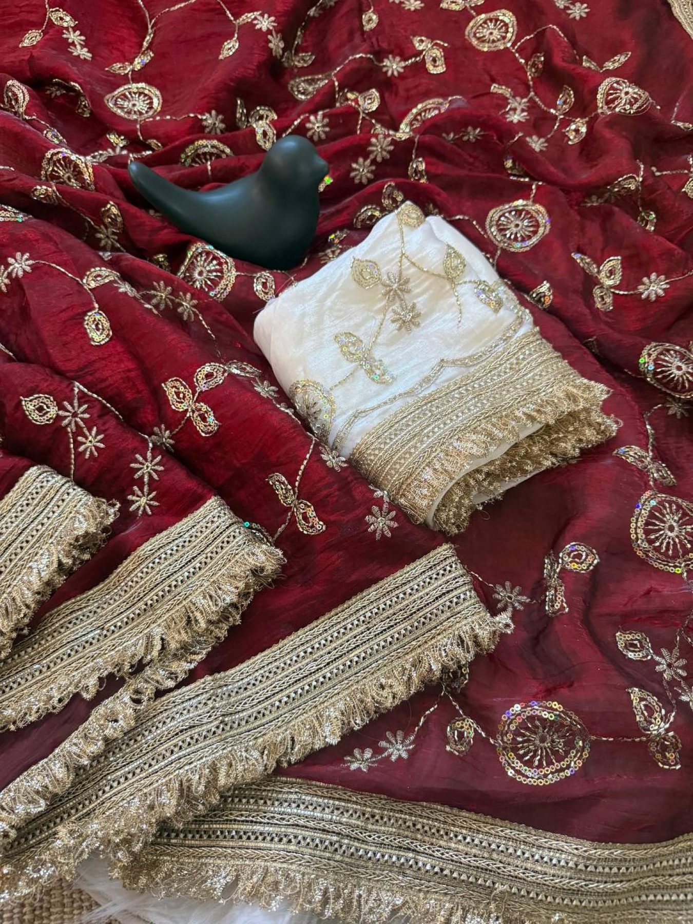 Gorgeous Maroon Designer Satin Saree with Bits Sequins Work for Party Wear