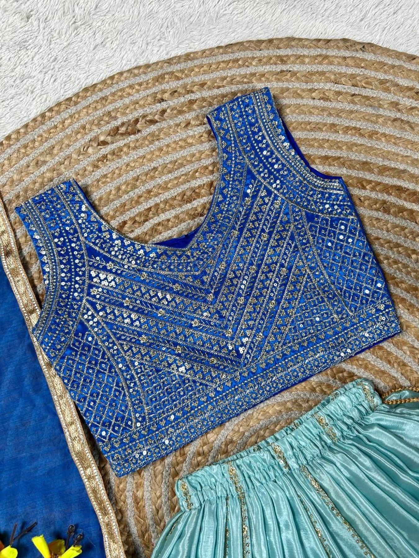 Graceful Blue Chinon Silk Lehenga Choli with Sequins Work for Party Wear
