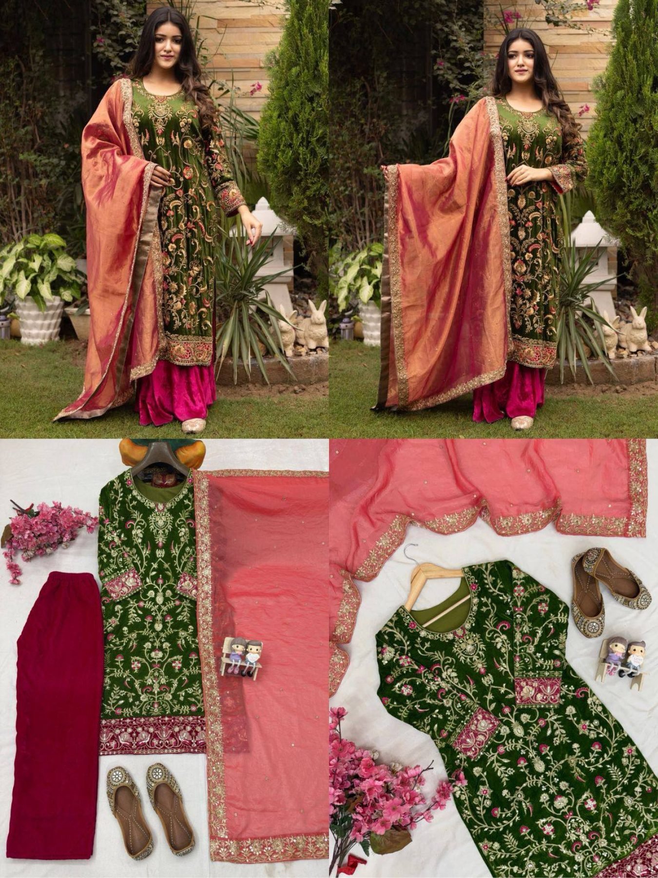 Experience luxury with this premium Velvet Kurti–Plazzo Set designed with rich 5mm sequins and zari embroidery.