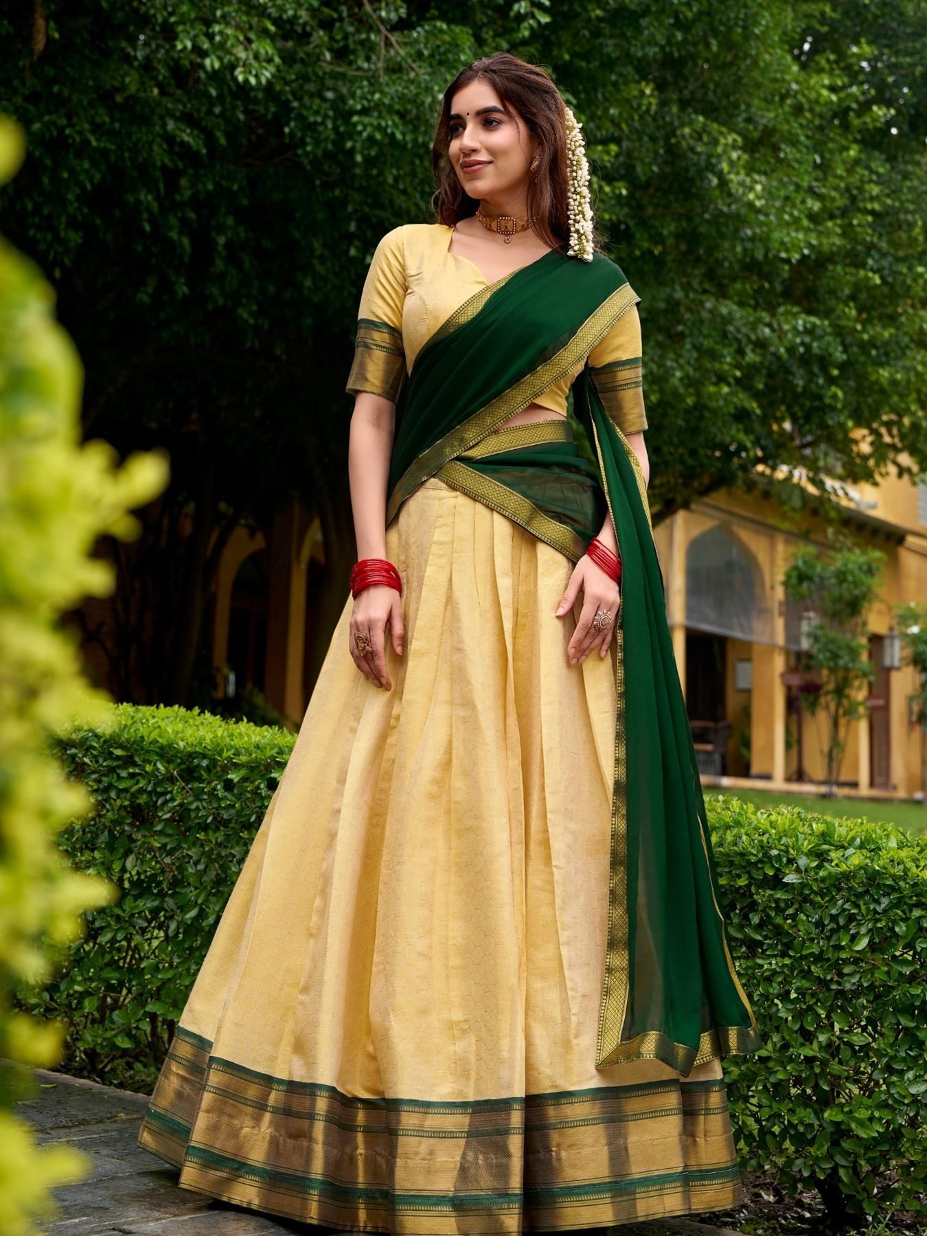 Green Kanchipuram Zari Lace Work Lehenga Choli South Indian Festival Look