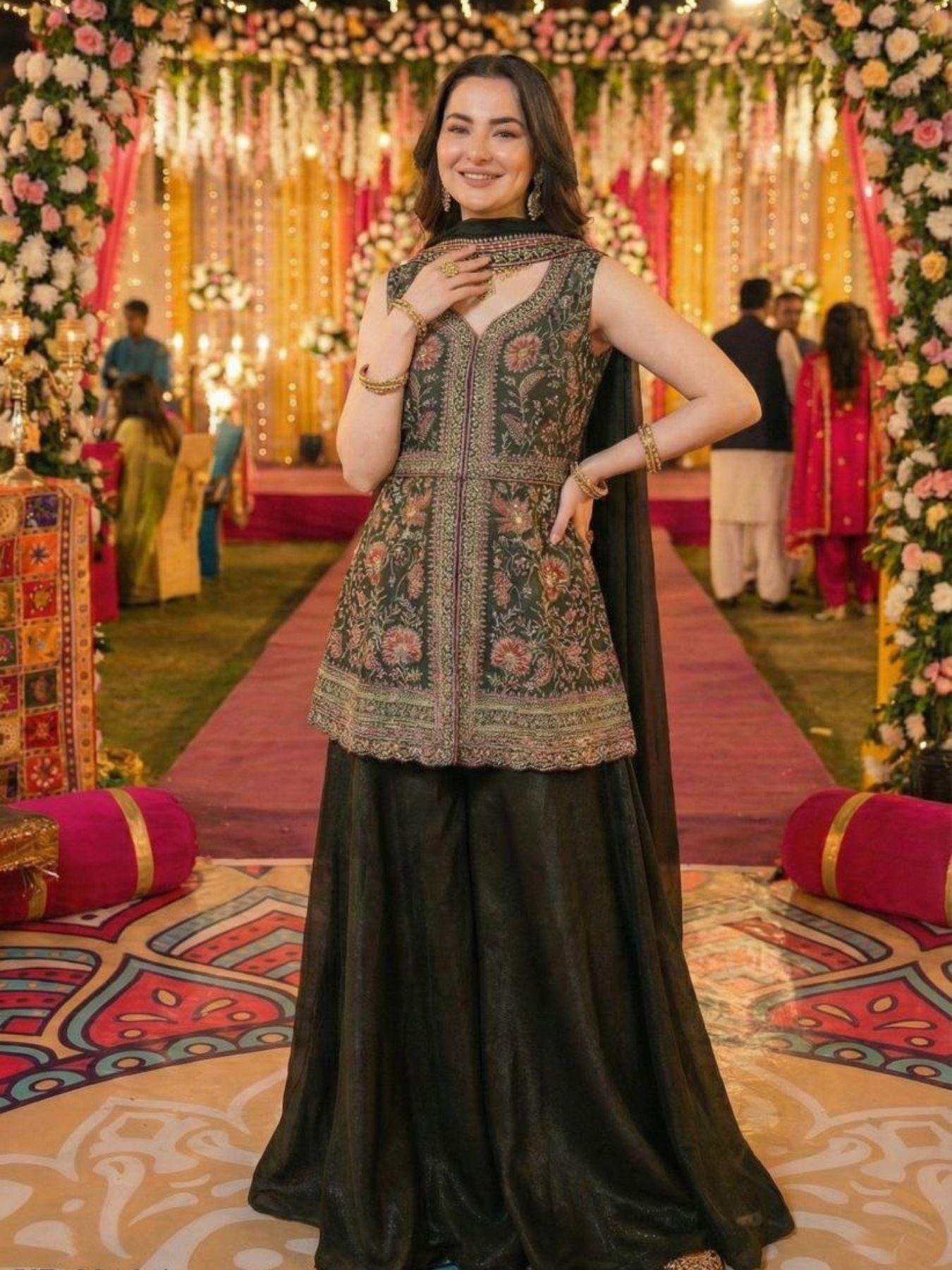Crafted from premium fabrics and styled with a belt-style dupatta, it’s ideal for festive, party, or wedding celebrations.