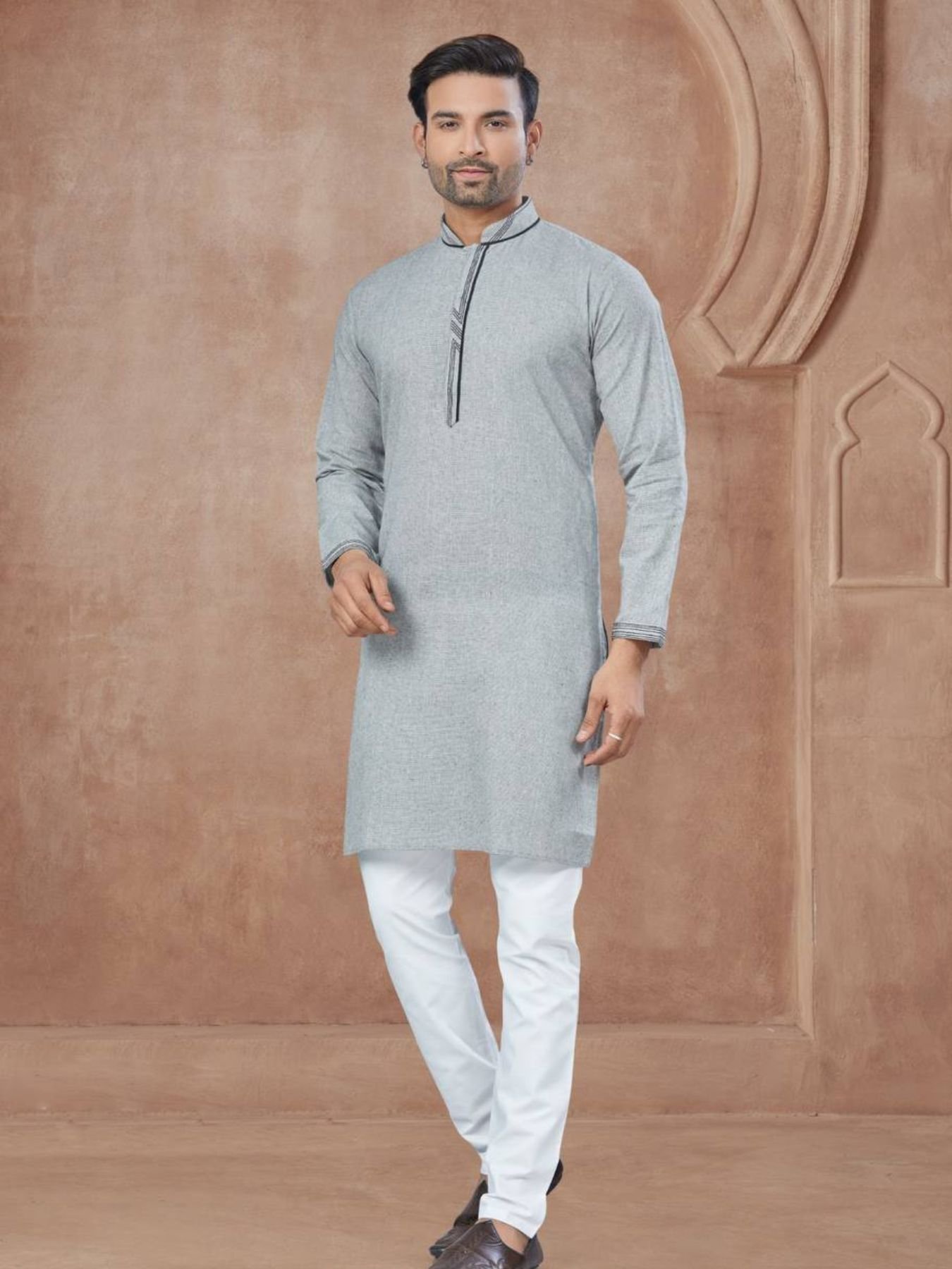Grey Premium Cotton Kurta Pajama Set for Men Ready to Wear Ethnic Outfit Bulk Stock available