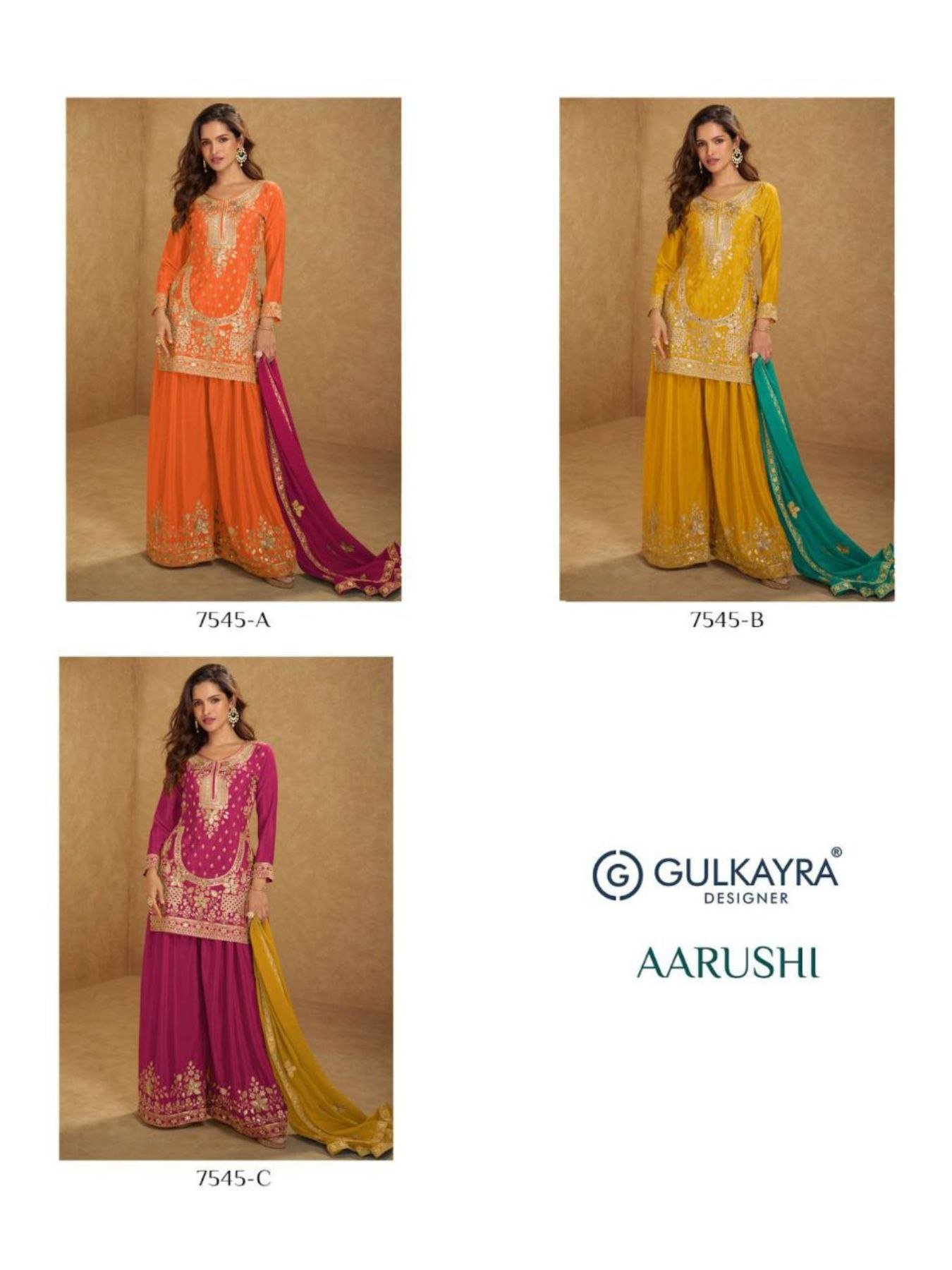 Gulkayra Aarushi Chinon Embroidered Gharara Suit Wedding Wear 3pc Catalog Set