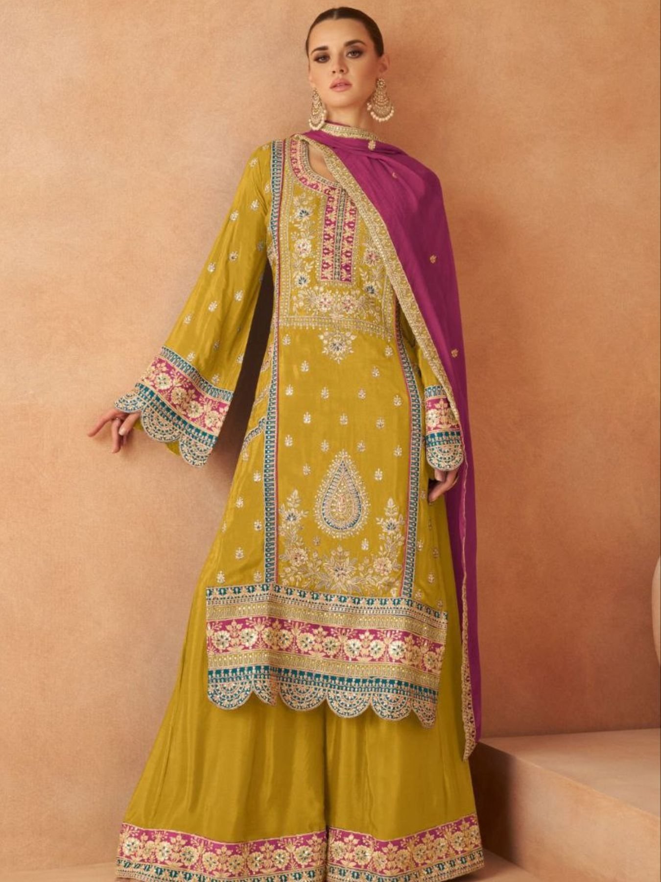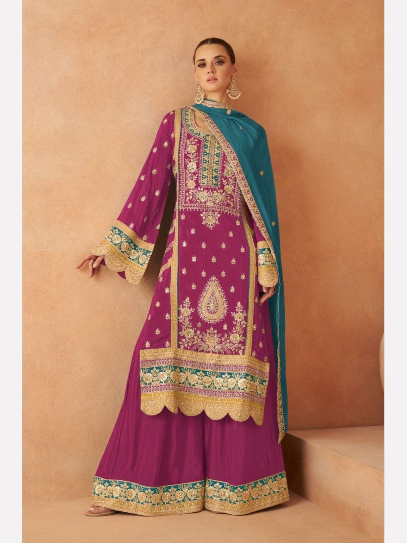 Gulkayra Designer Real Chinon Plazzo Suits Collection