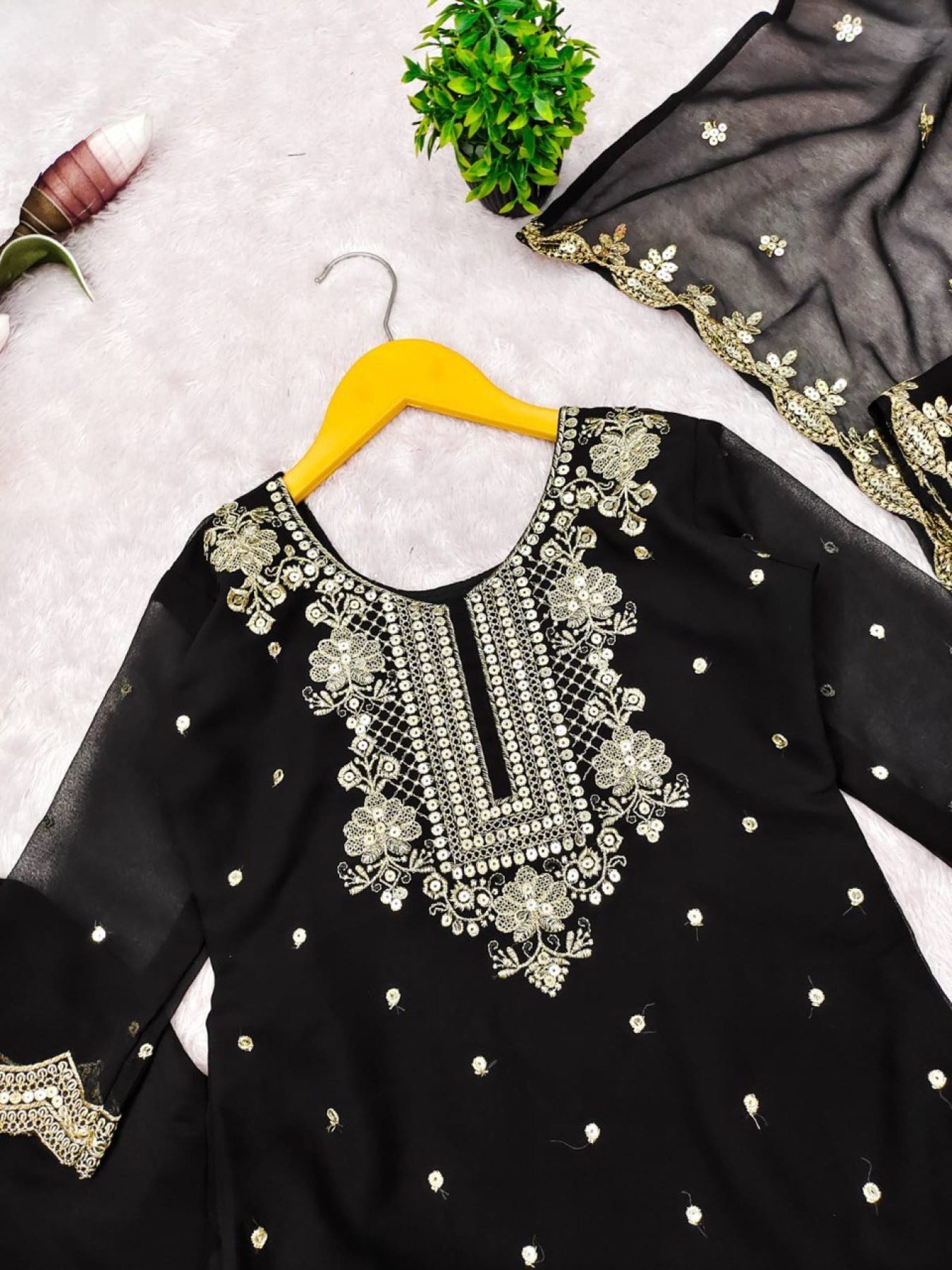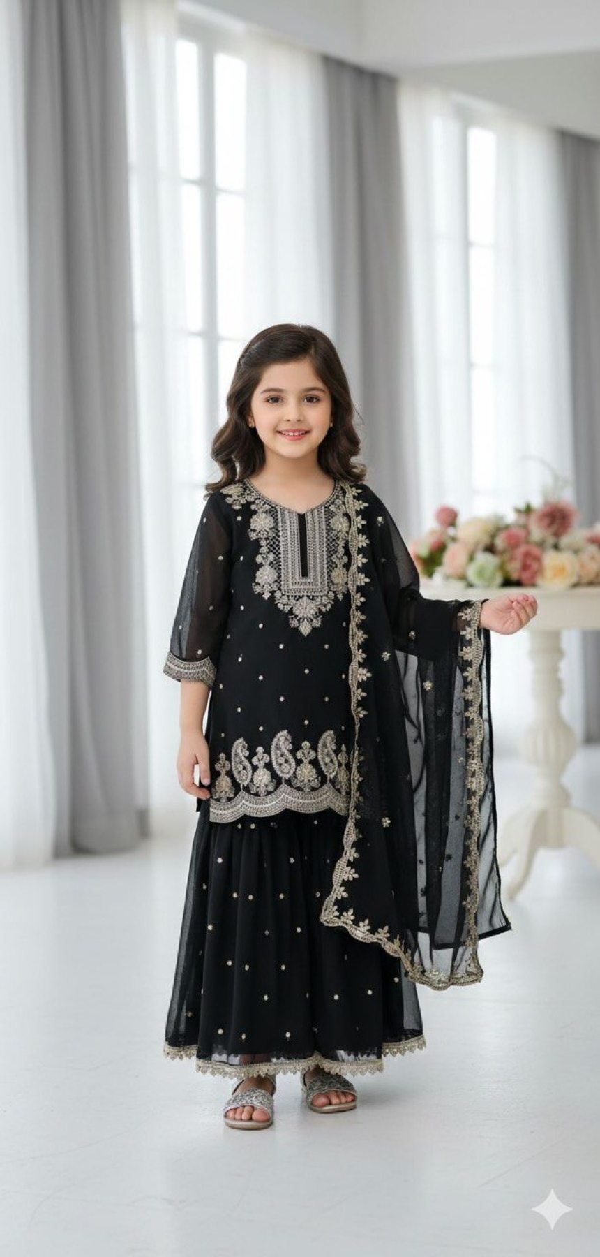 Handcrafted Black Girls Palazzo Suit with Dupatta for Wedding and Party Wear