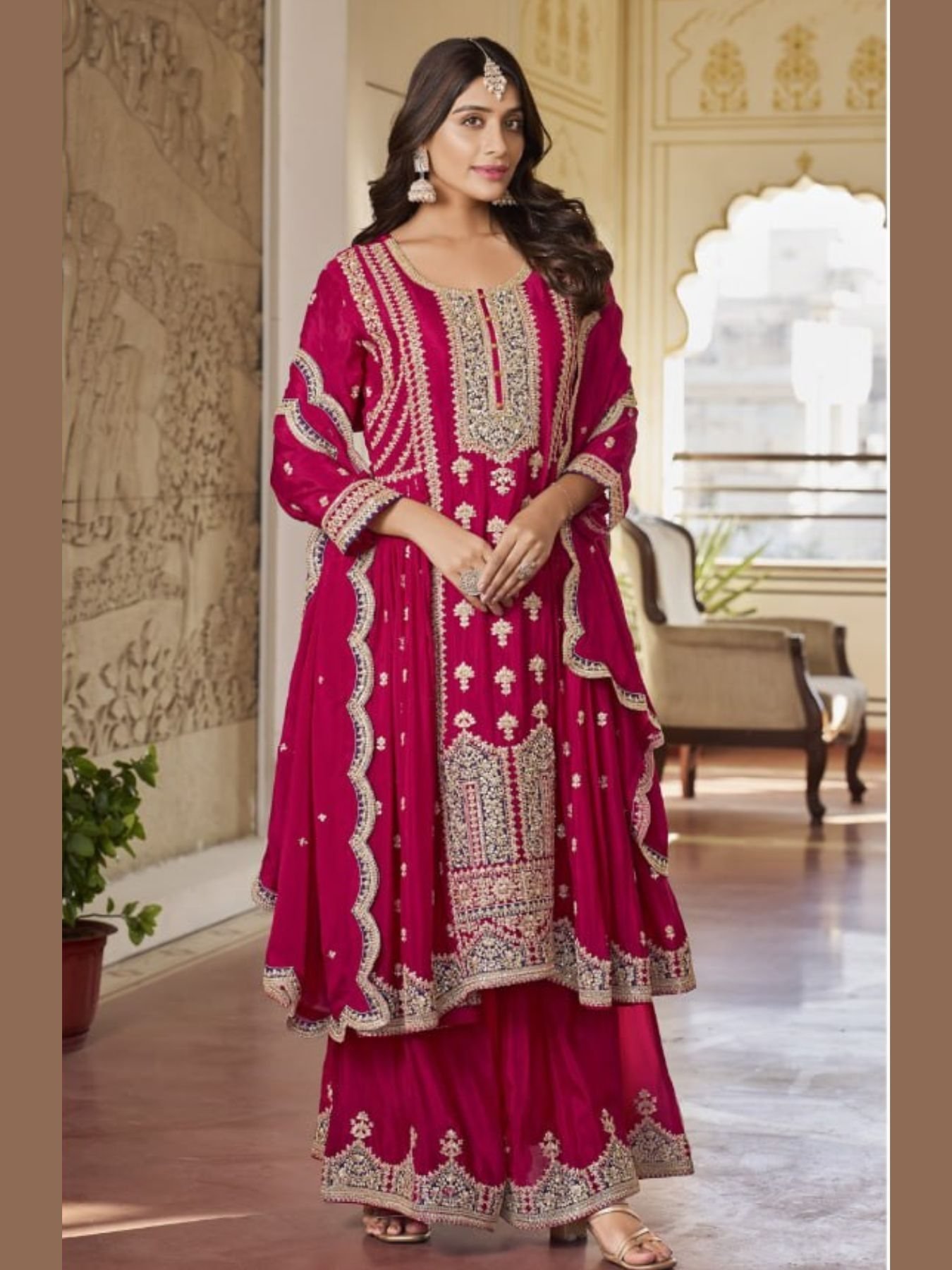 Heavy Chinon With Embroidery Work Plazzo Suit Collection