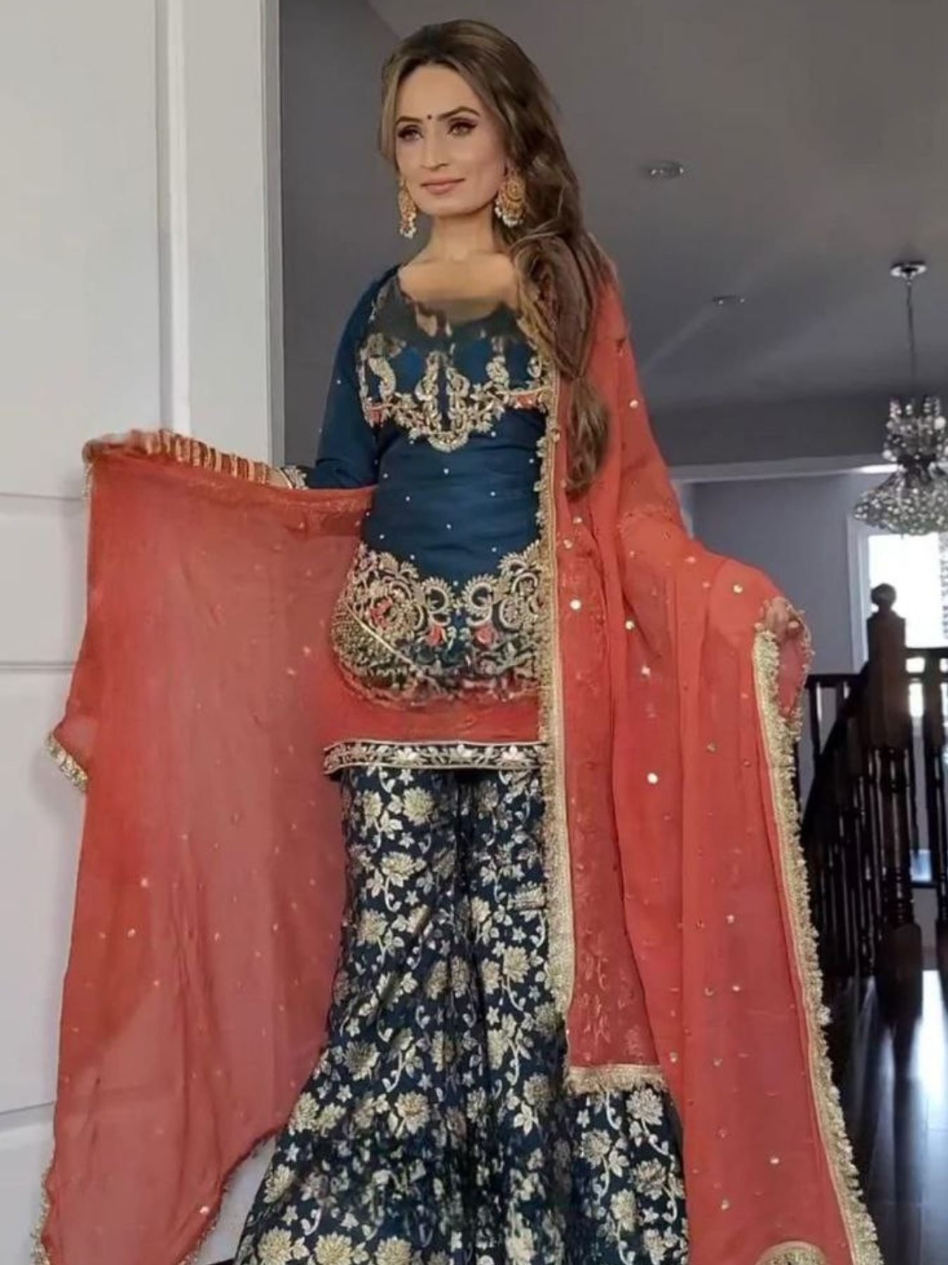 Heavy Faux Georgette Fabric With Heavy Embroidery Work Sharara Suits