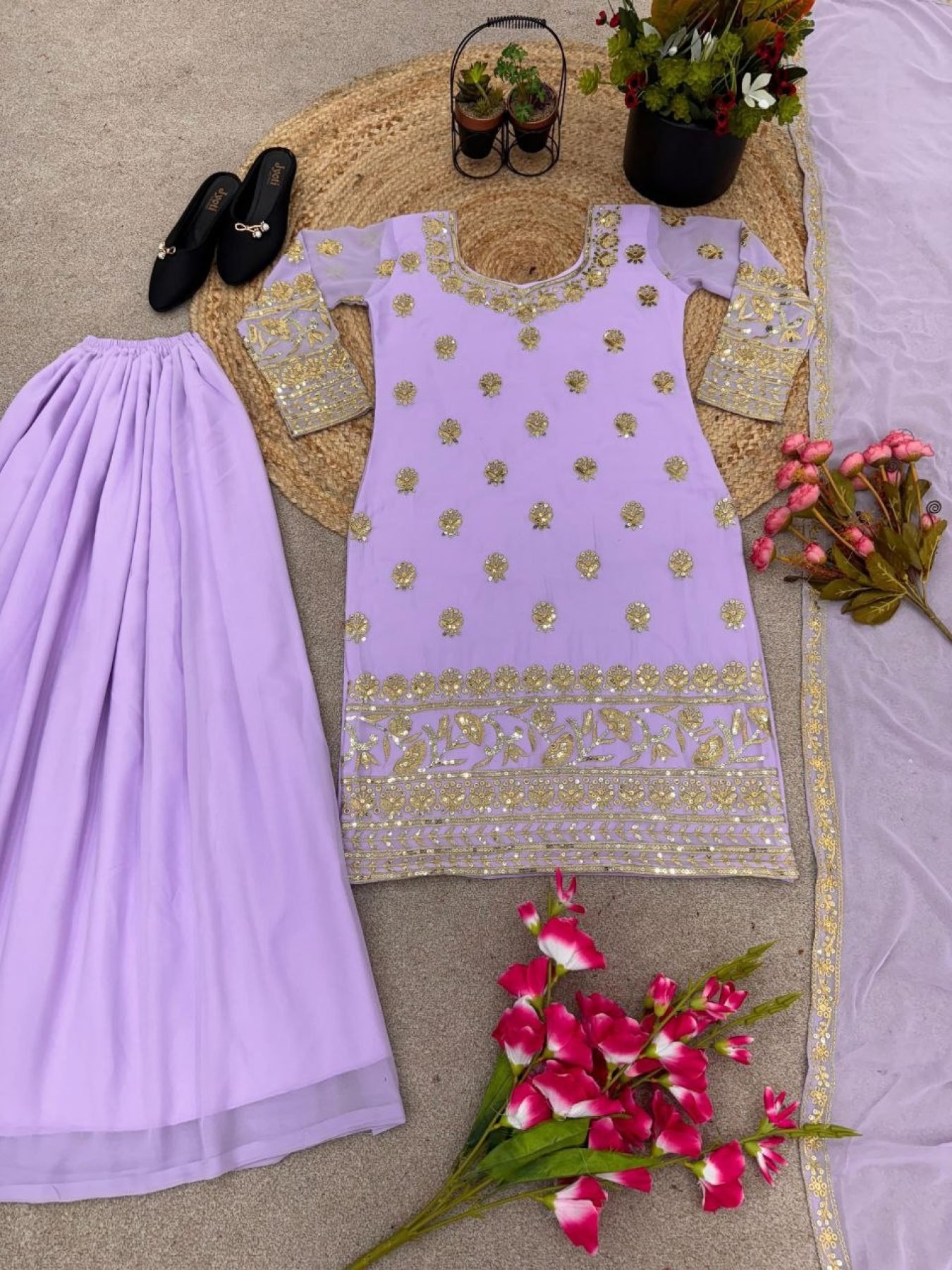 Dupatta Fabric* :Heavy Faux Georgette With Embroidery Sequence Work Lace Border