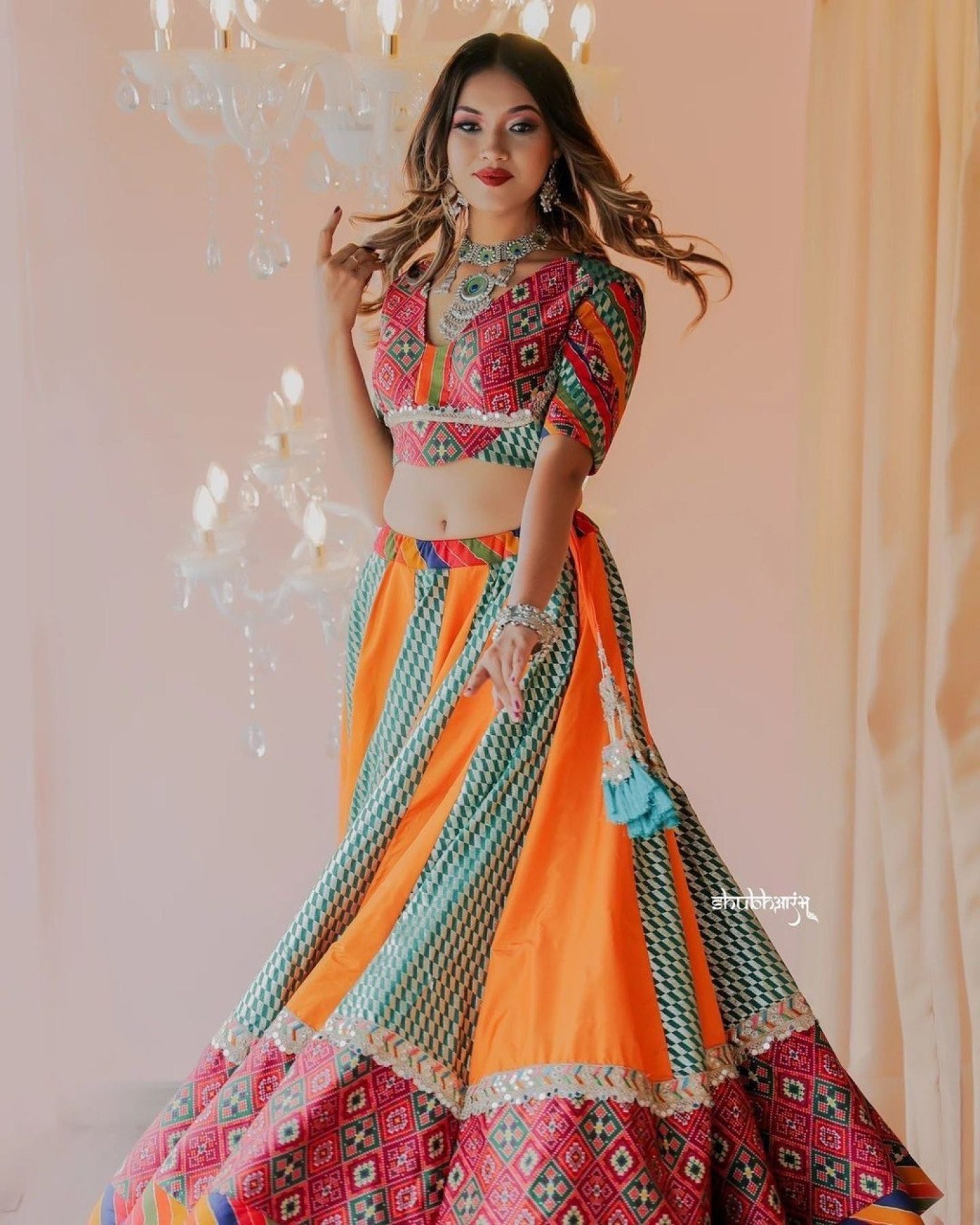 Heavy Muslin Cotton Printed Lehenga Choli With Mirror Work