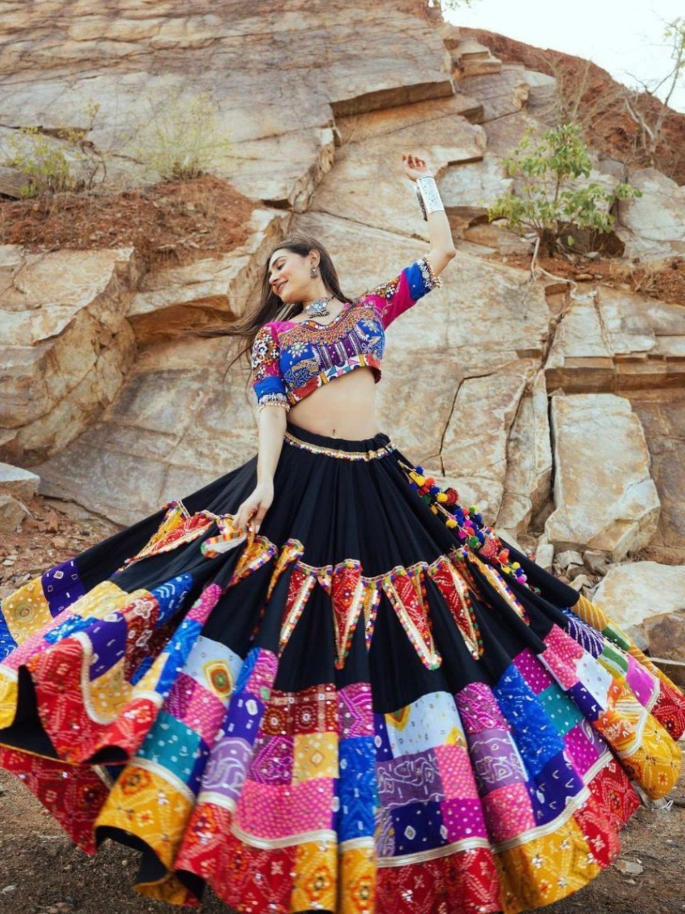 Heavy Muslin Cotton Printed Navratri Lehenga Choli With Mirror Work