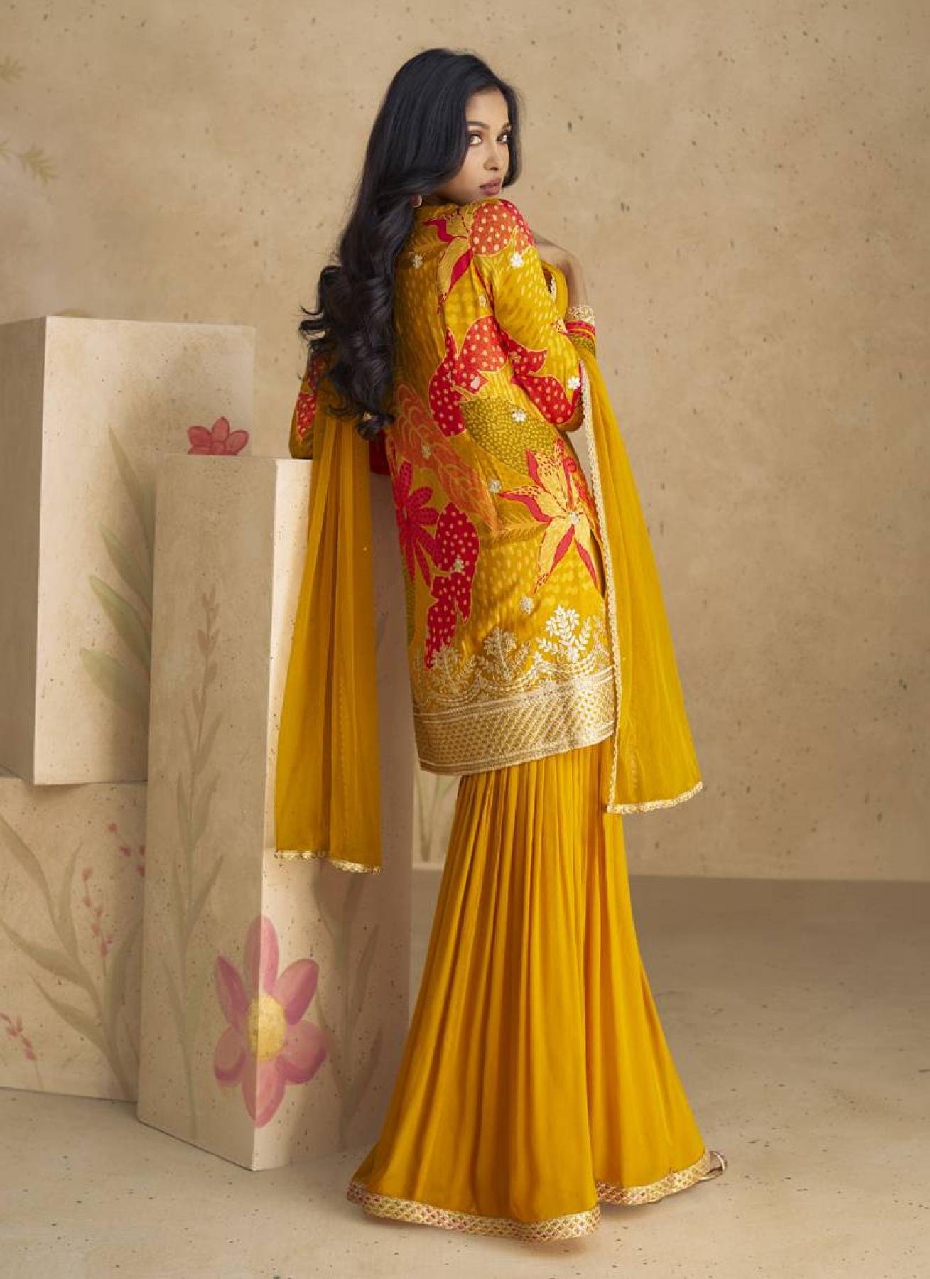 Heavy Mustard Chinon Silk Embroidered Suit with Net Dupatta for Festive Wear