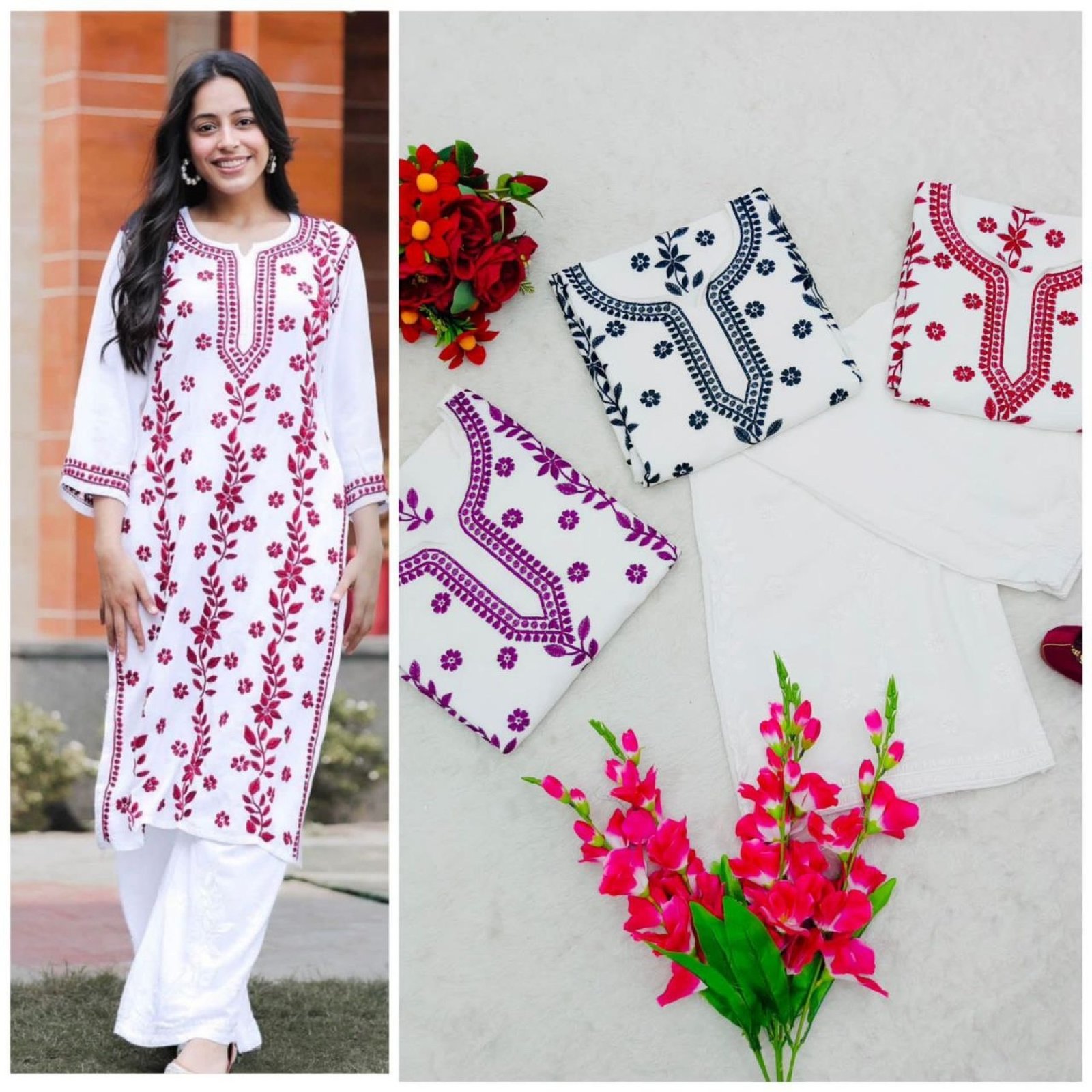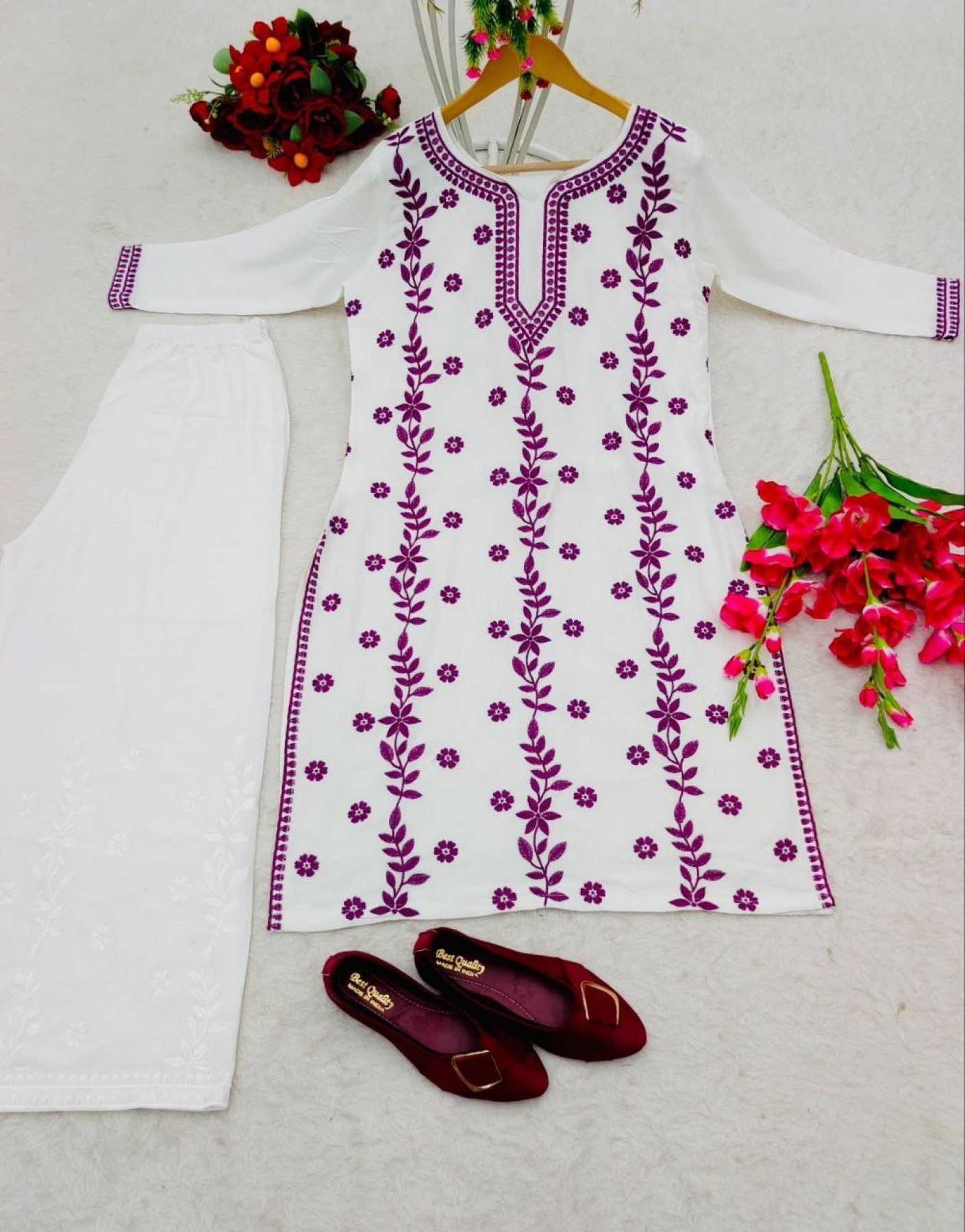 Heavy Rayon With Thread And Embroidery Kurti Plazzo