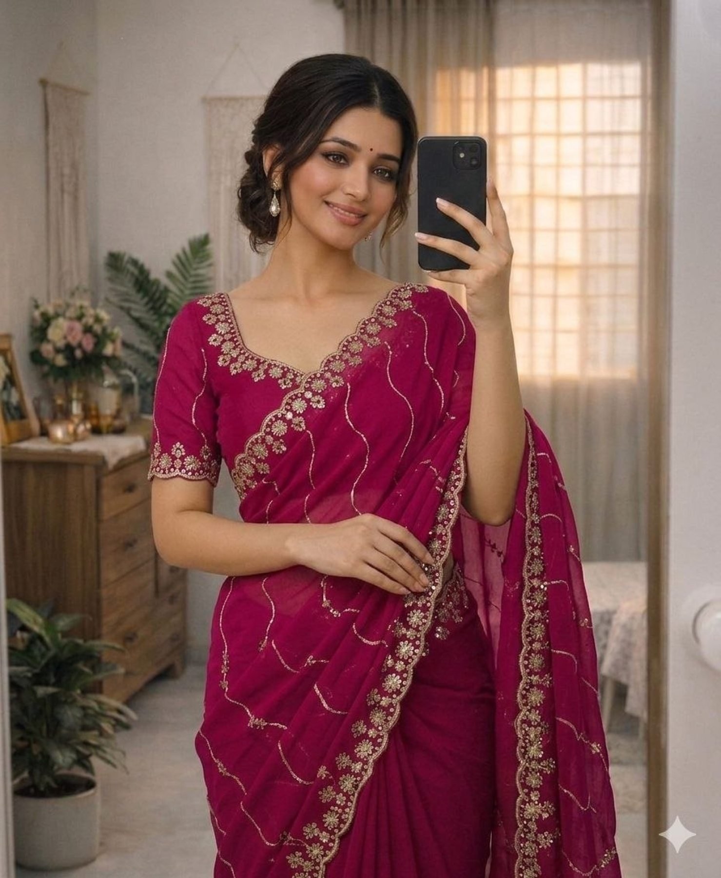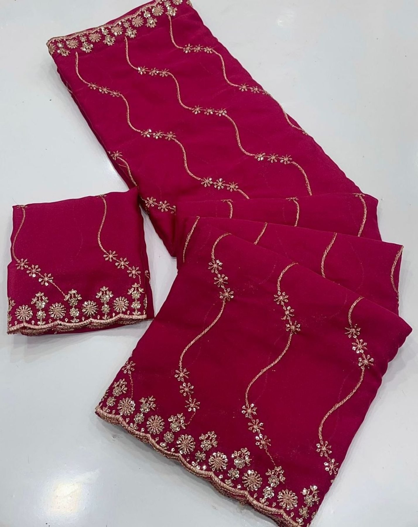Stylish star georgette saree featuring all-over embroidered sequins work paired with heavy embroidered blouse. Perfect for festive and party occasions.