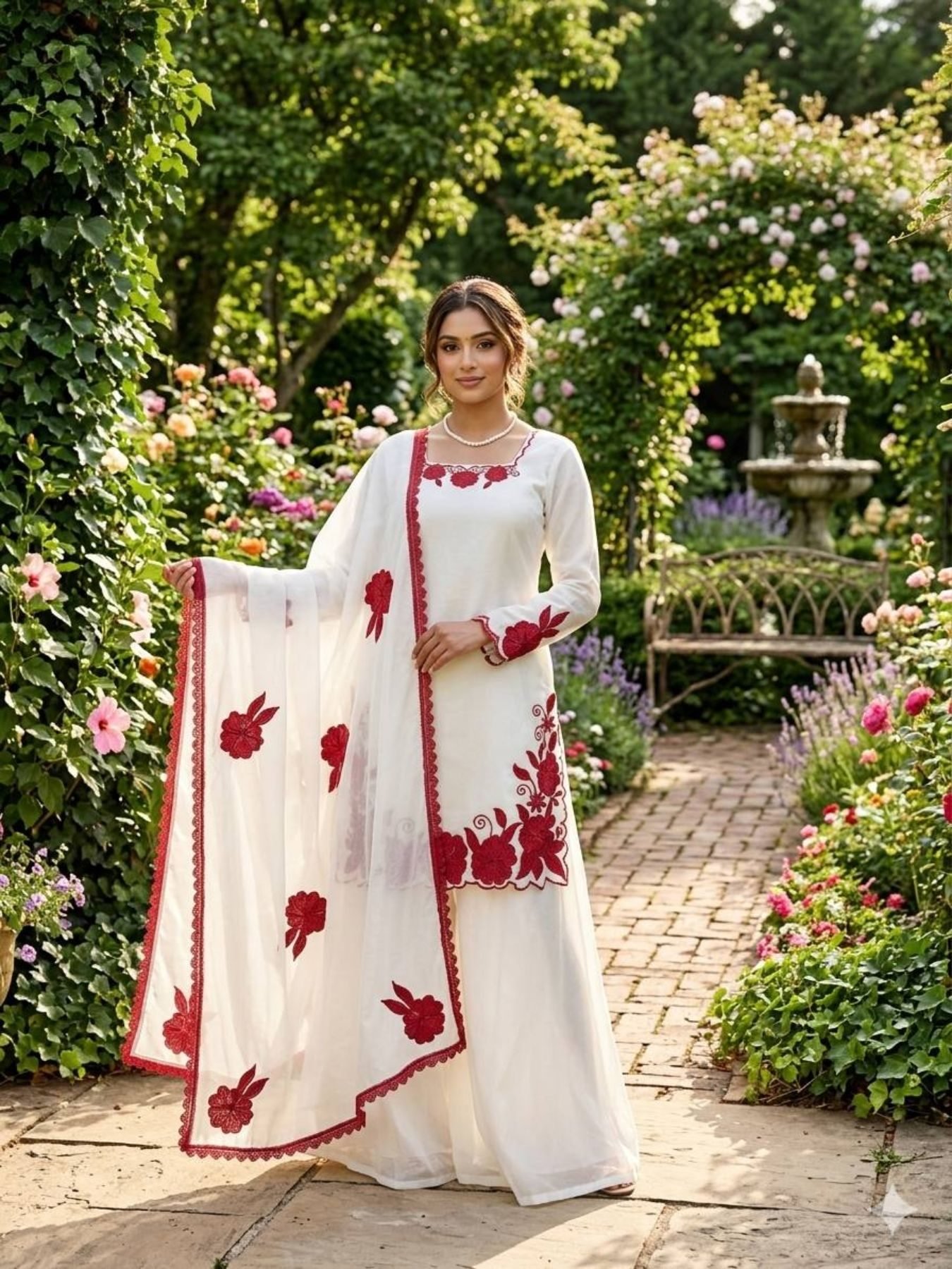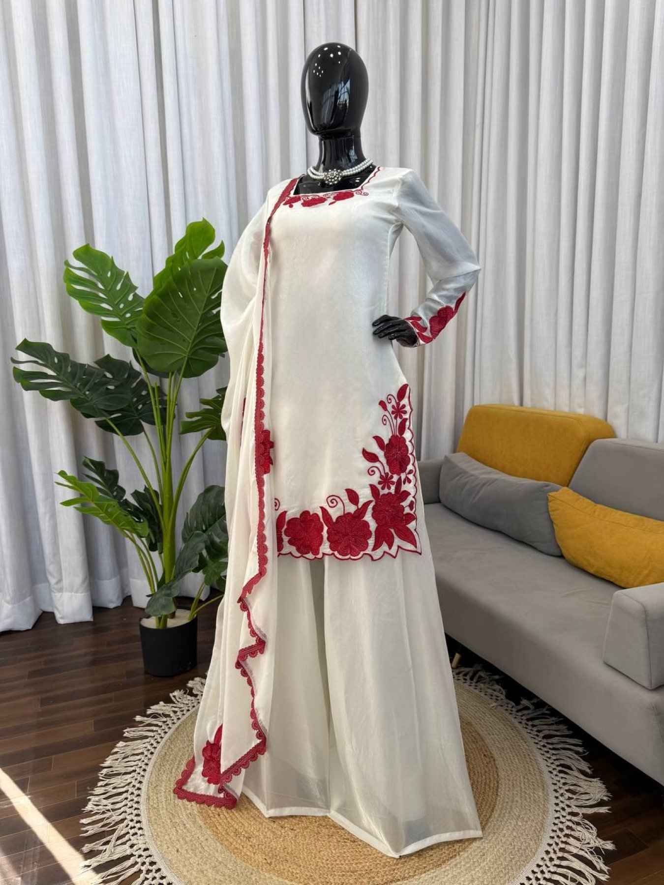 Hype Red And White Silk Farshi Pant Set with Thread And Sequnce Dupatta Trendy Festive Collection
