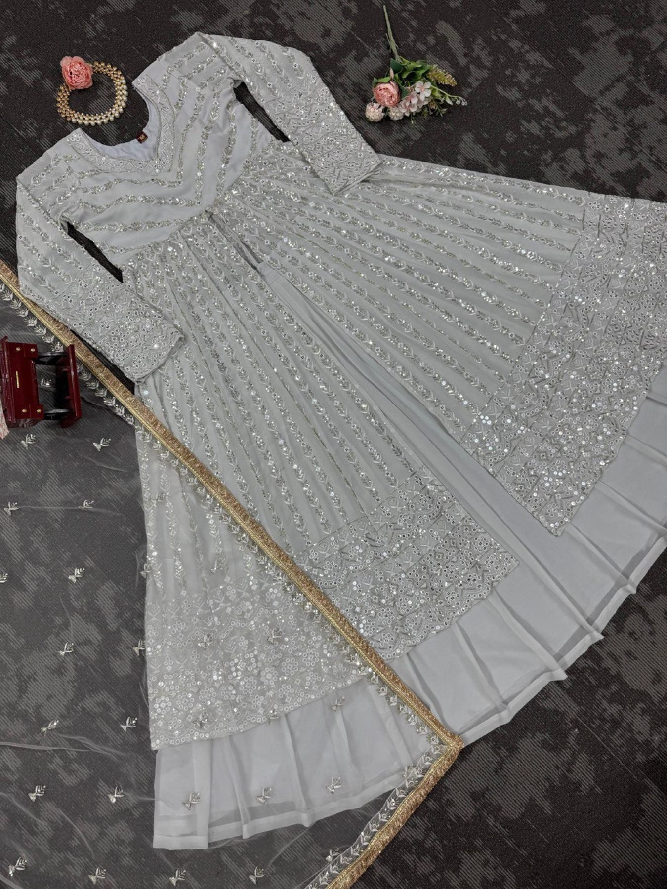 Icy Silver Georgette Lehenga with Net Dupatta Dreamy Festive Style