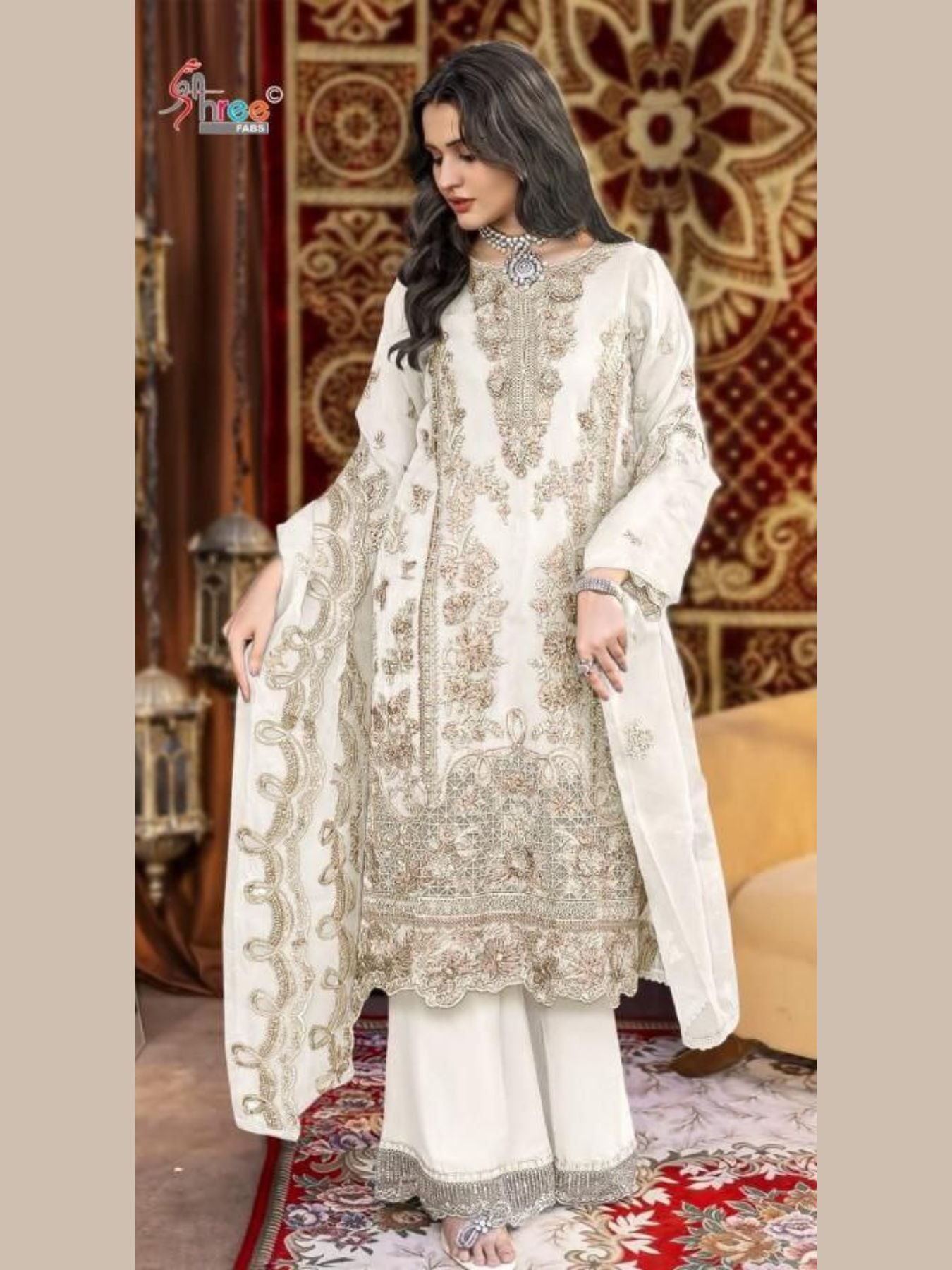 Impeccable White Chiffon Embroidered Party Wear Suit Set by Shree Designer