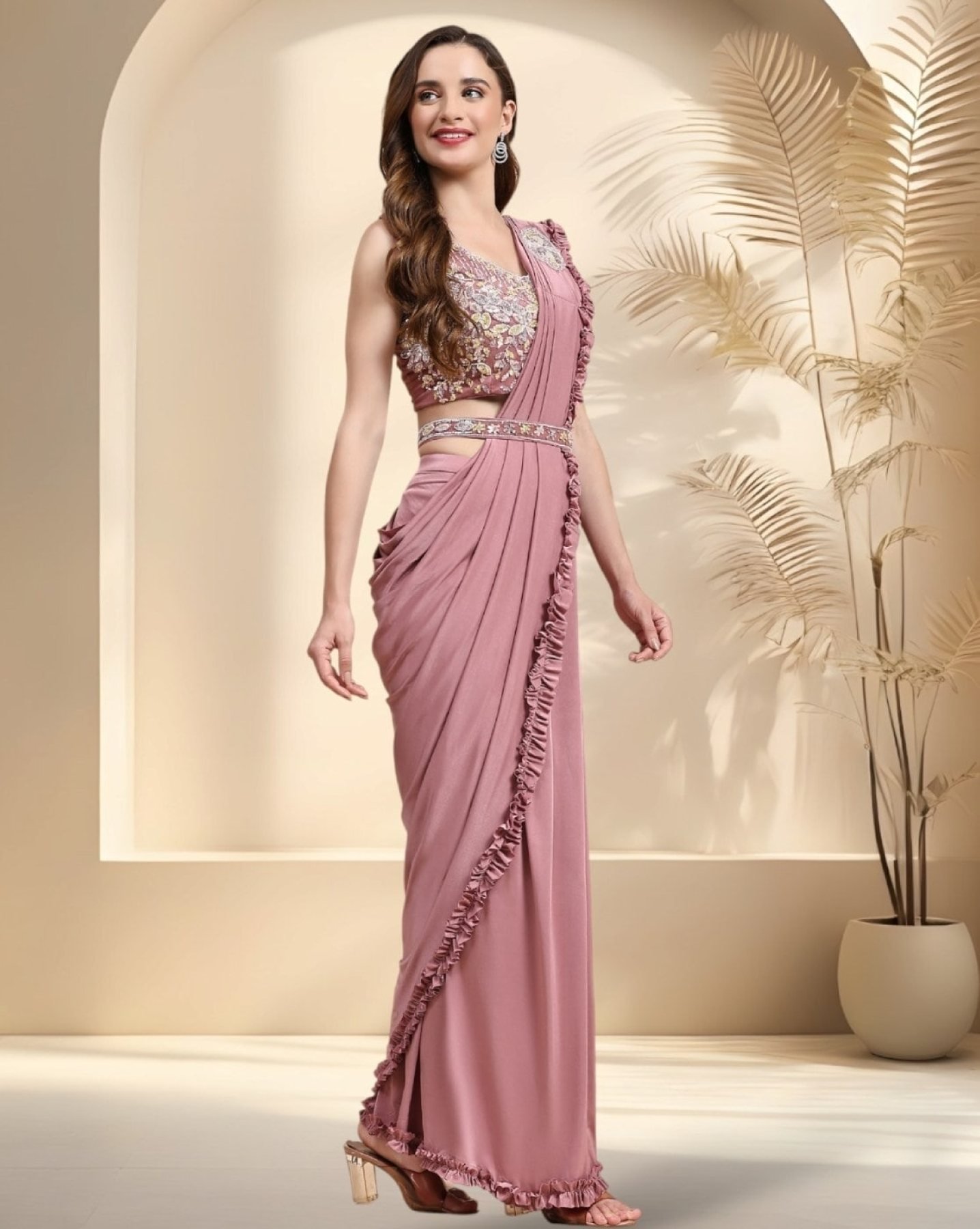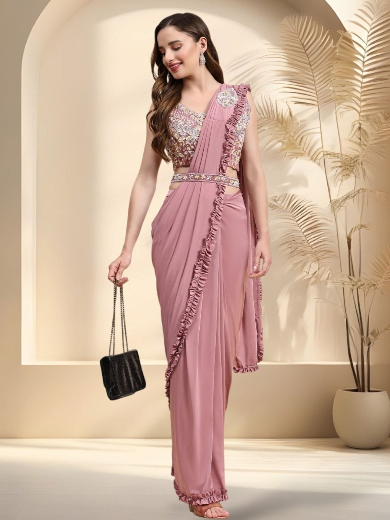 Experience the perfect blend of tradition and modernity with our Ready-to-Wear Sarees collection. Featuring exquisite hand-embroidered blouses and sarees crafted from premium imported fabric with a stylish frilled border, this set is designed to make you stand out effortlessly. Complete with a handwork belt, this saree is a statement of elegance and sophistication.