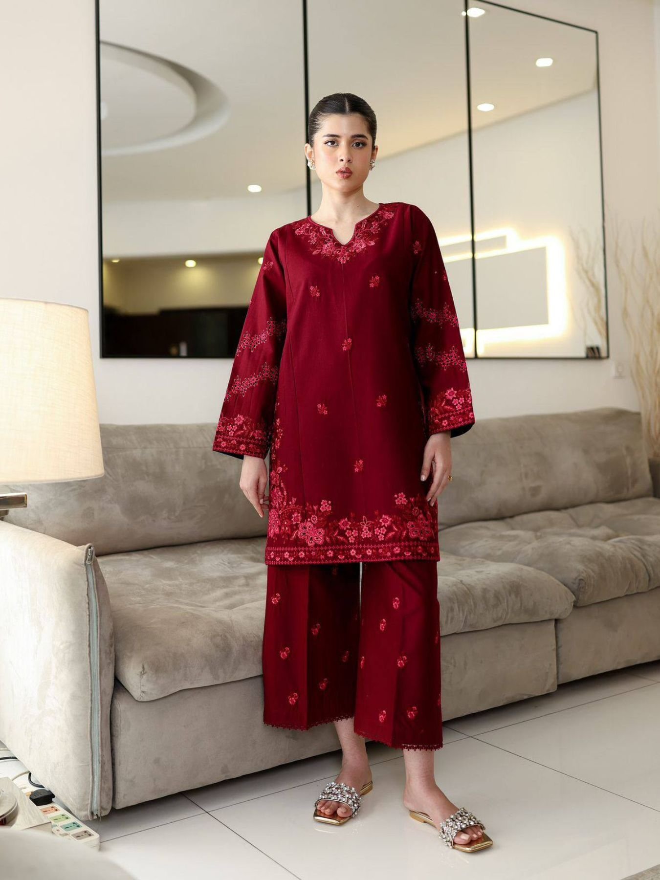 Size ChartThis newly launched maroon embroidered cord set is designed in premium rayon cotton fabric with soft micro inner for day-long comfort. The Kurti features exquisite thread embroidery on a beautifully finished silhouette, paired with a matching embroidered Plazzo enhanced with fancy lace detailing. Fully stitched up to XXL, this set is perfect for festive wear, office functions, family events, and premium reseller collections. Best-selling option for wholesalers, resellers, and export buyers seeking high-quality ethnic wear.
