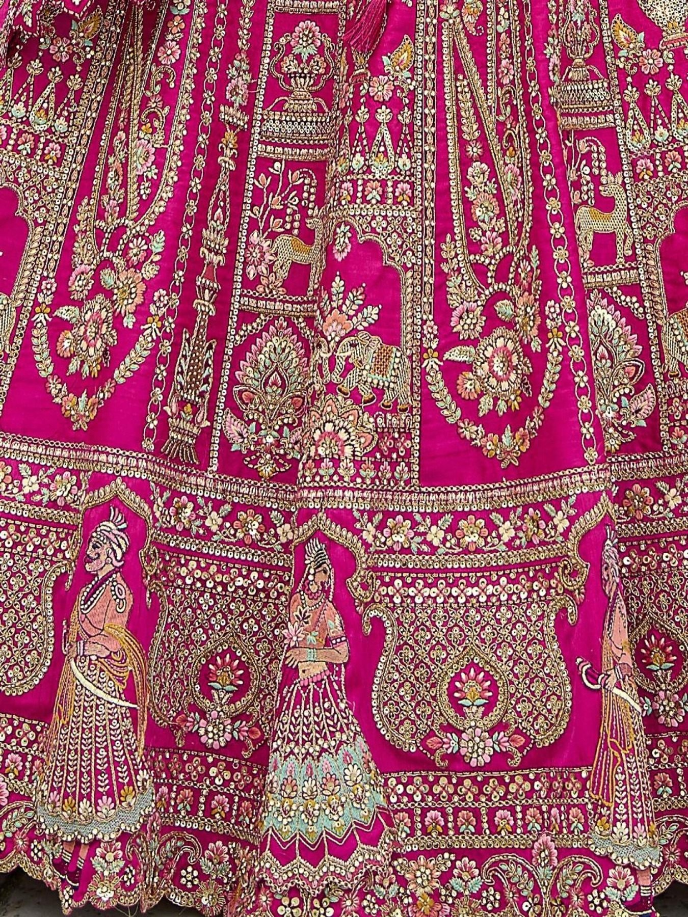 Elevate your ethnic wardrobe with this Stunning Pink Silk Circular Lehenga Set, perfect for engagements, festivals, sangeet, and weddings. This elegant ensemble features a circular lehenga with a 3-meter gher, offering a graceful and traditional silhouette. Paired with a matching pink silk blouse and a heavy net dupatta adorned with intricate embroidery and handwork, this set radiates sophistication and charm. Embrace the richness of traditional craftsmanship with this exquisite lehenga set, designed to make your special occasions unforgettable.