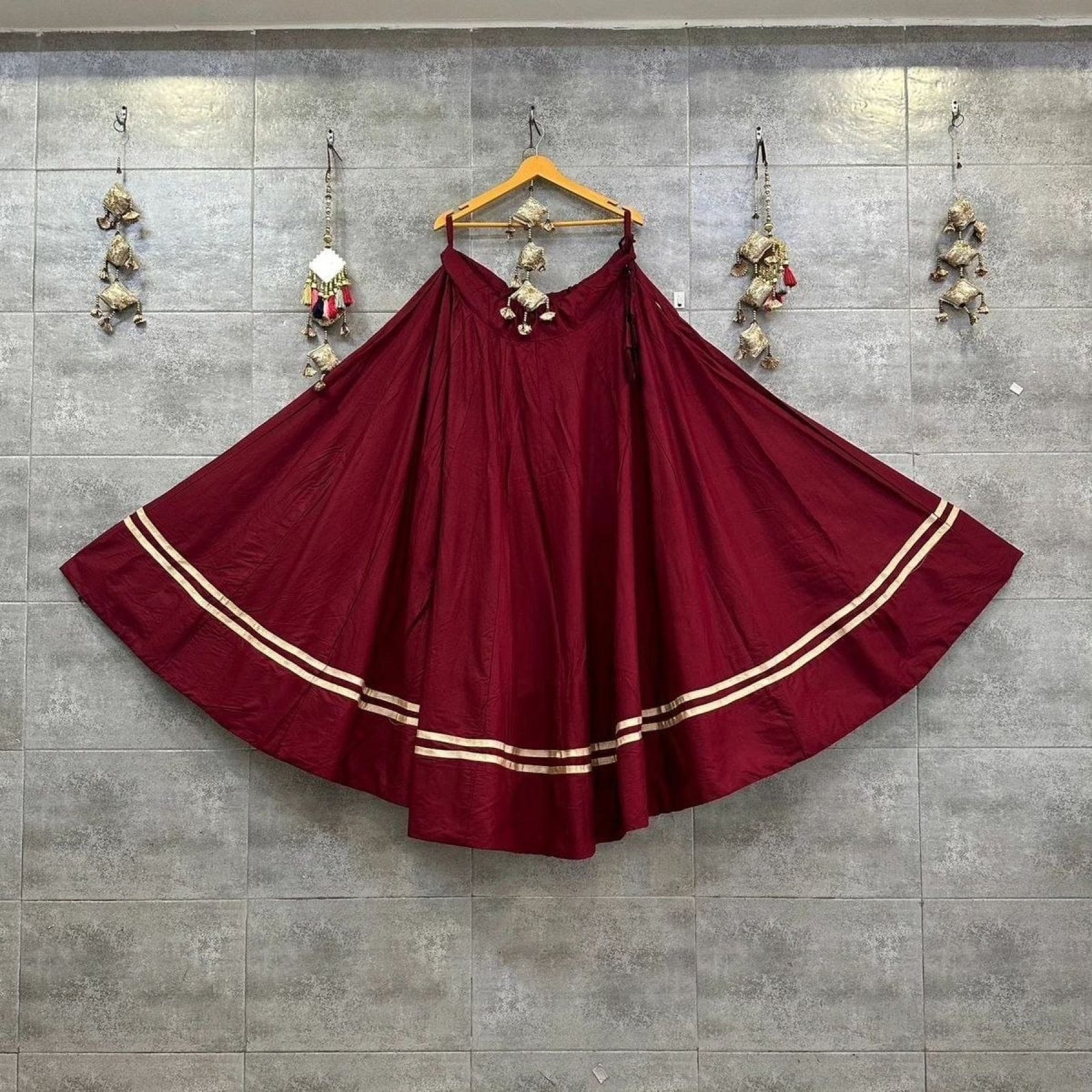 Navratri special rayon lehenga featuring a 4 meter flare with elegant gotta patti work. Designed for comfort and style, perfect for festive celebrations and garba nights.