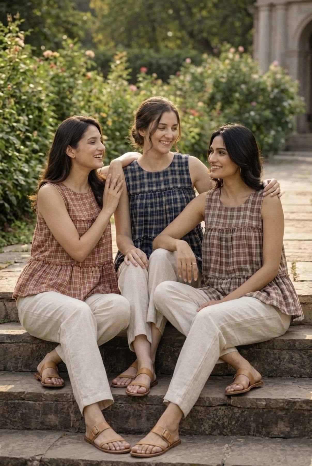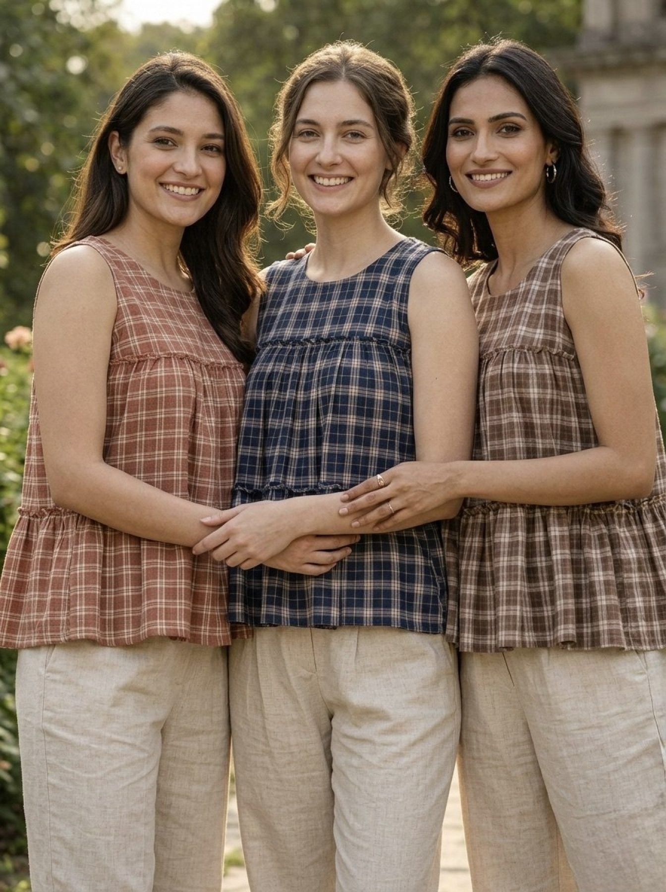 Comfortable summer wear linen cotton top and pant set featuring a stylish frill stitch design and breathable fabric. Available in multiple colors, perfect for daily wear and casual outings.