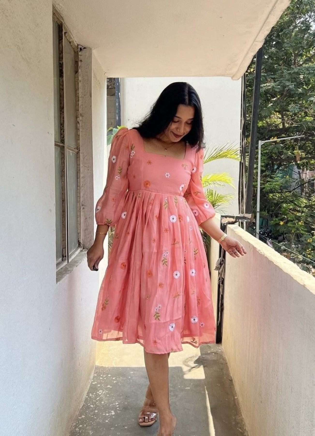 Elegant chanderi cotton dress designed with full lining and comfortable fit. Lightweight and breathable, perfect for summer wear, office wear, and daily use.