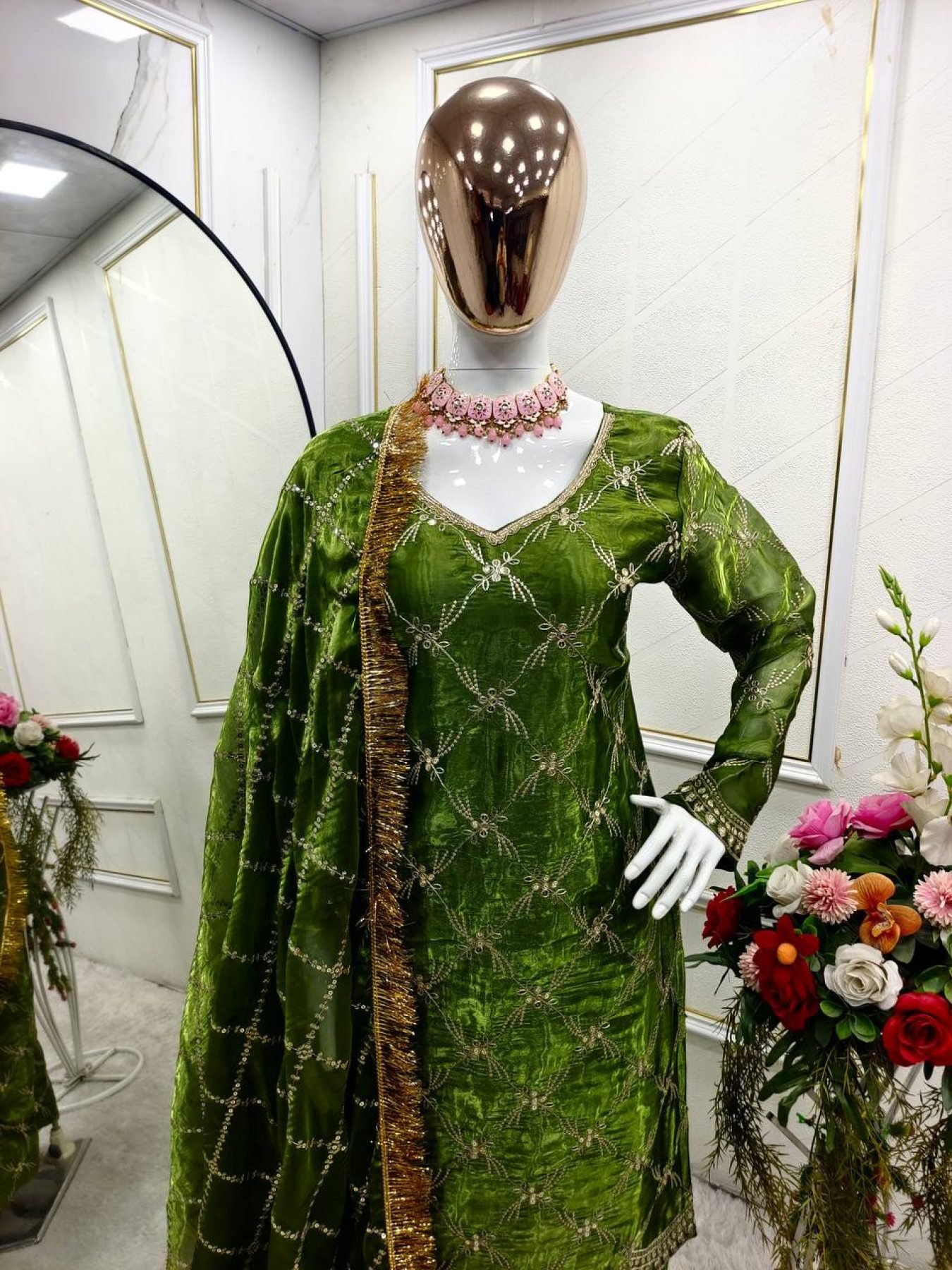 Work: 5mm Sequin Embroidery with Fancy Zaler Lace Work