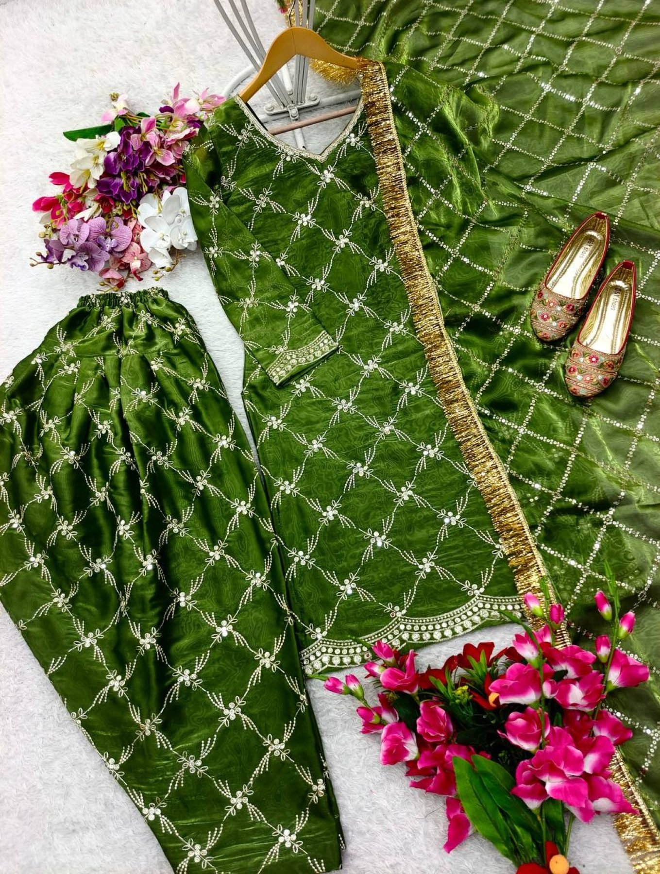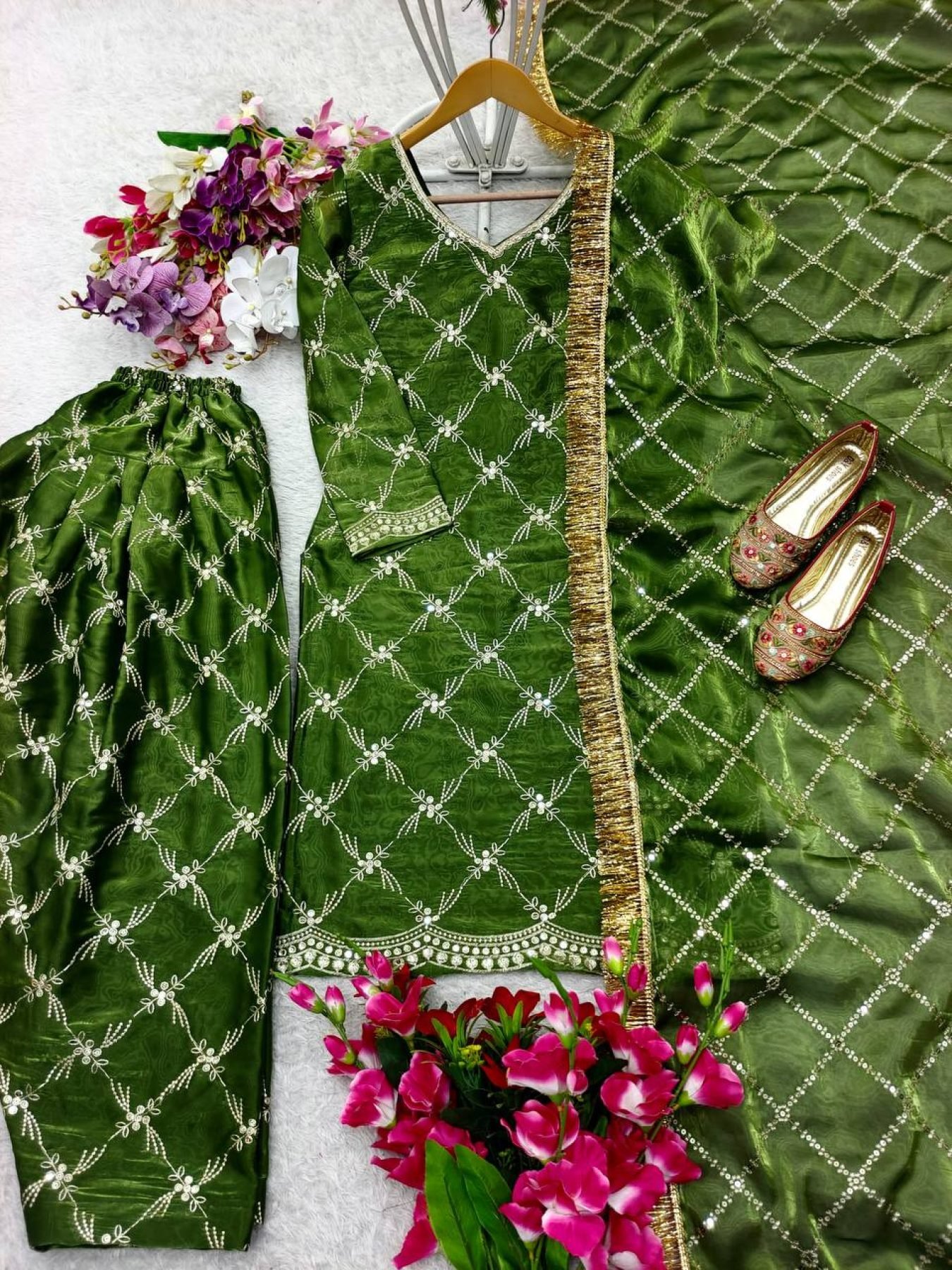 Jimmy Choo Silk Top Patiyala And Dupatta Set Fully Stitched Ready To Wear