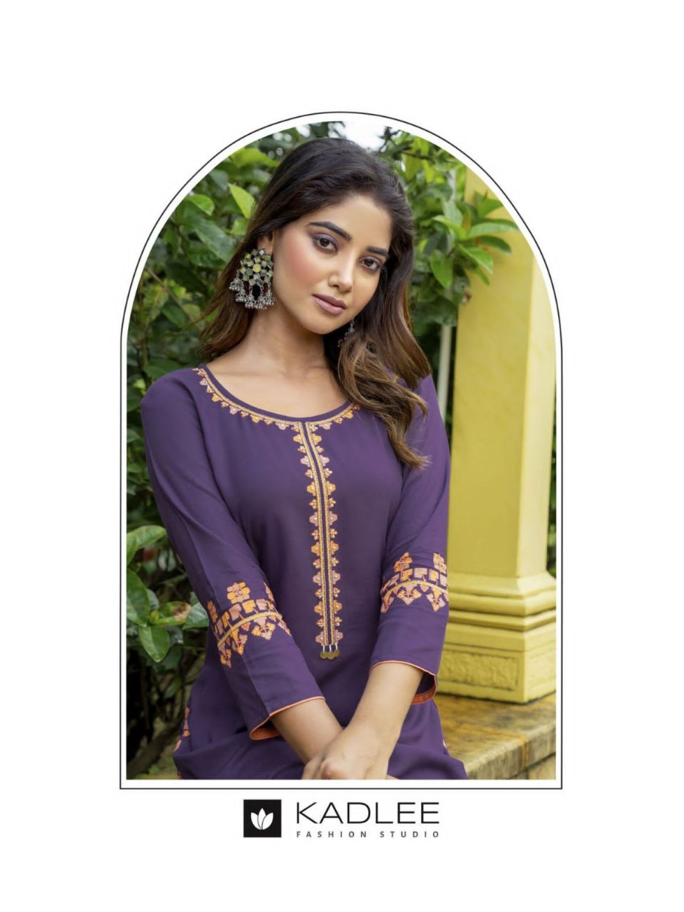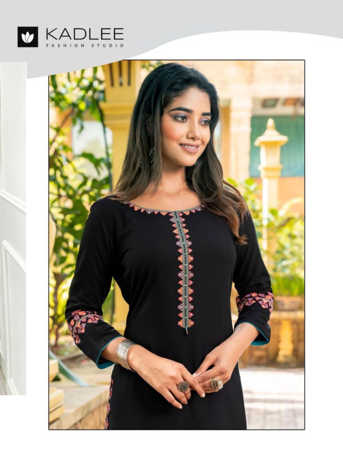 Kadlee Chanchal Wholesale Heavy Reyon Embroidery Long Kurtis Catalog