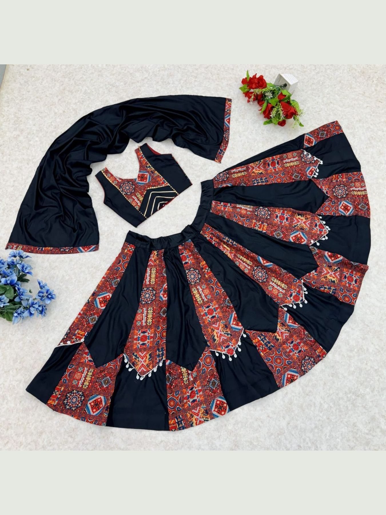 Choli (Top): Fully stitched Rayon Cotton with printed patch work design