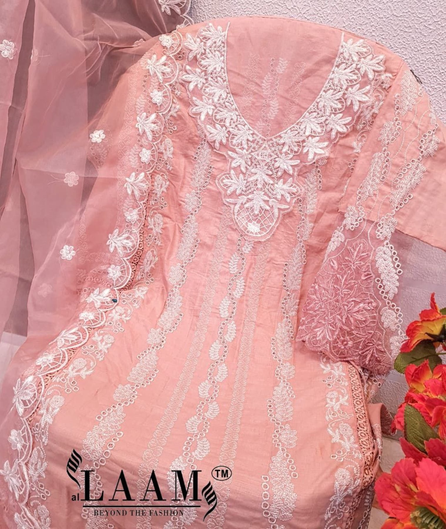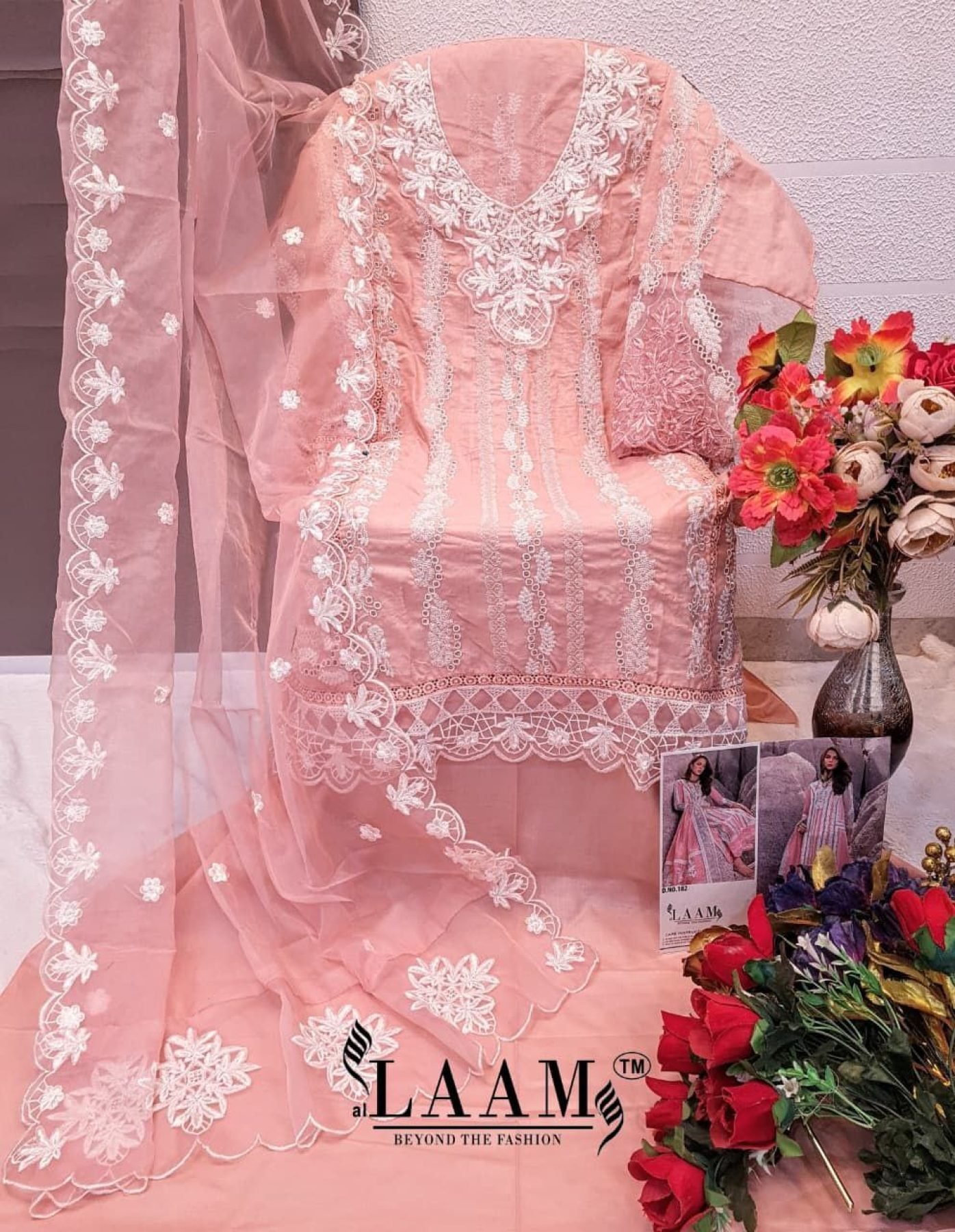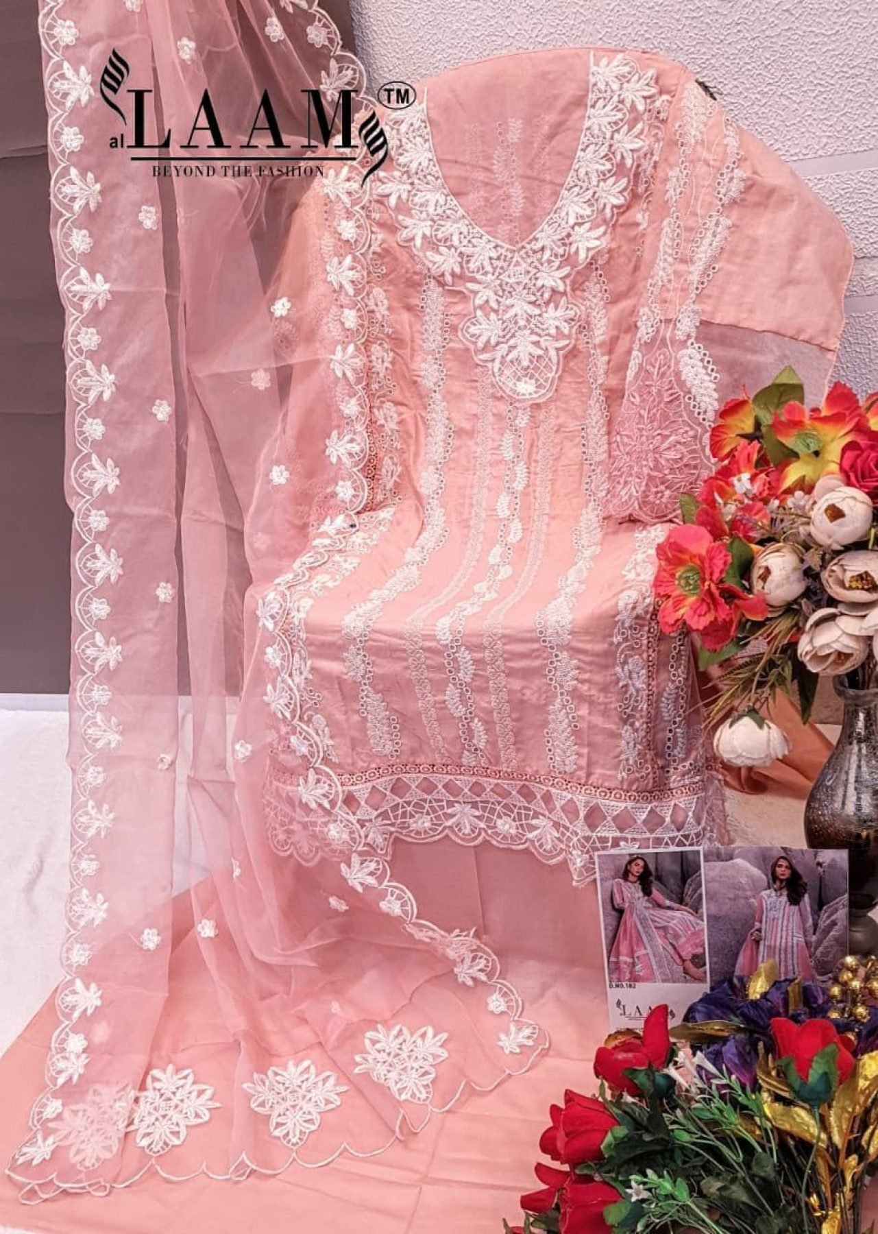 LAAM Design No 182 Semi Lawn Embroidered Suit with Heavy Organza Dupatta for Finest Look