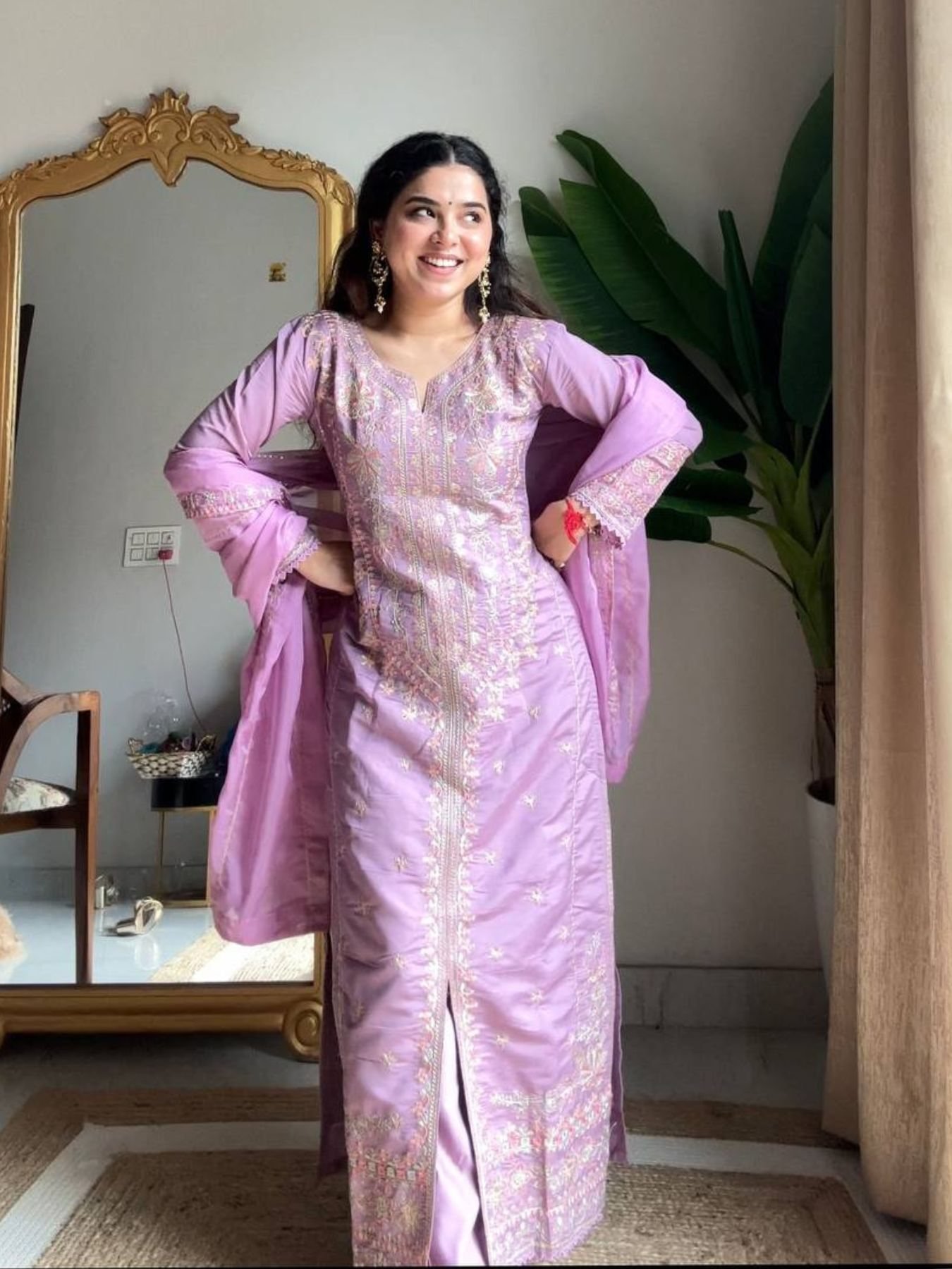 Lavender Suit Palazzo with Embroidered Dupatta Premium Festive Fashion 2025 Collection