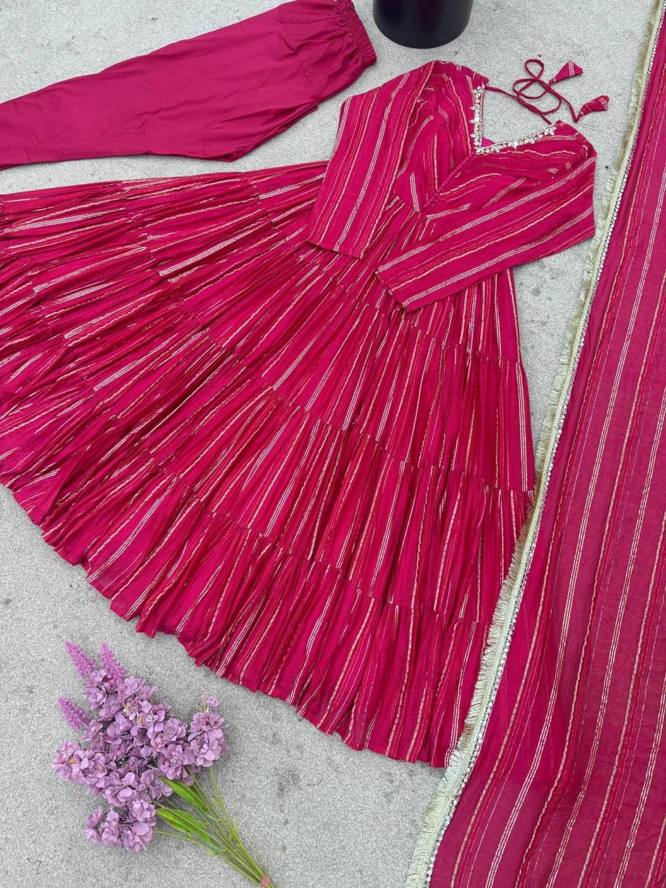 Lavish Pink Fully Stitch Mal Chanderi Full Sleeve Gown with Lace Border Dupatta for Functional Wear