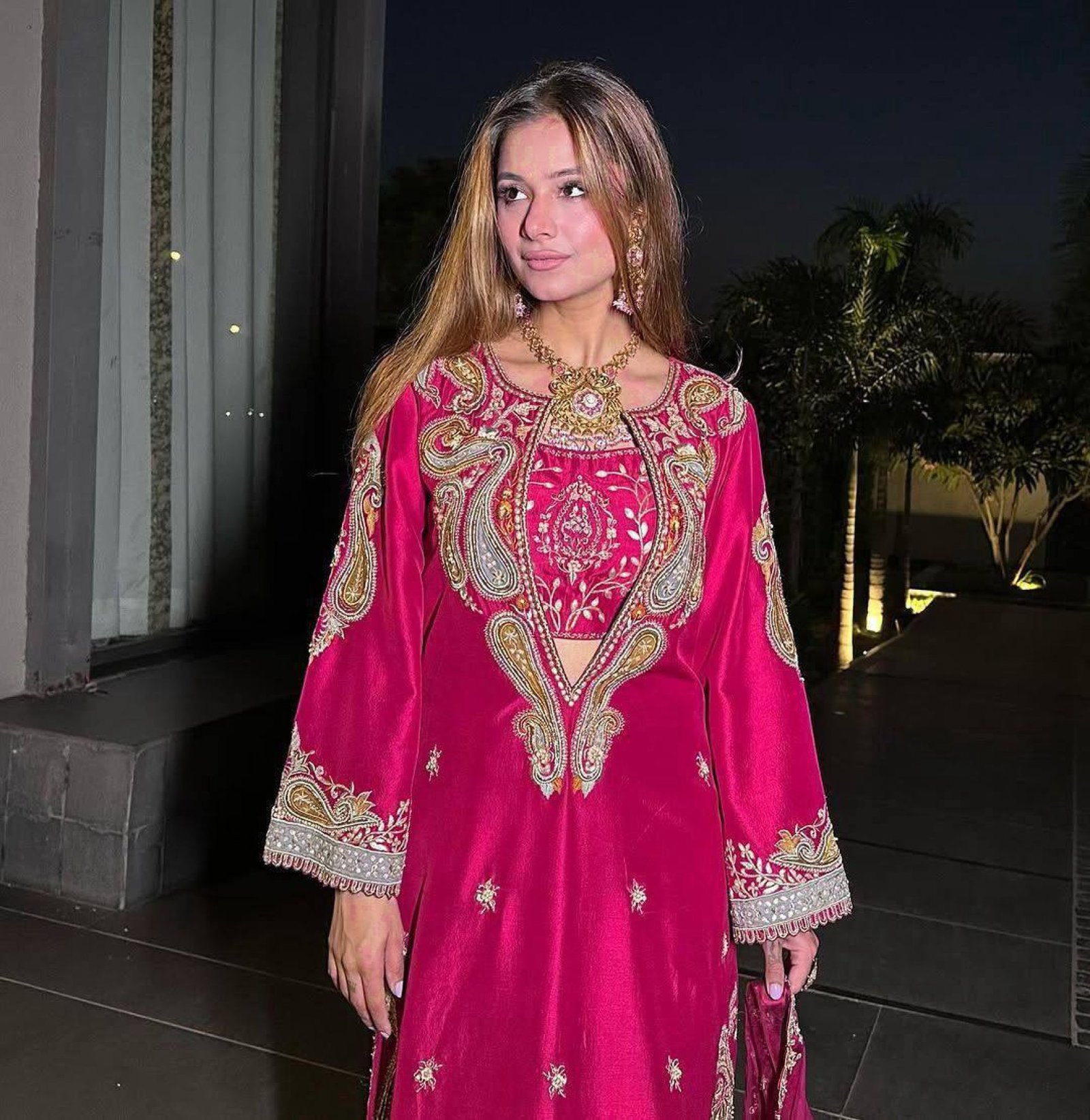 Step into a trendy and viral festive look with this premium chinon kurti set featuring elegant thread and sequins embroidery on both front and back for a rich designer finish. Paired with a fully stitched blouse style kurti, comfortable embroidered pant, and a graceful georgette dupatta, this outfit offers a perfect blend of style and sophistication for weddings, parties, and festive occasions.