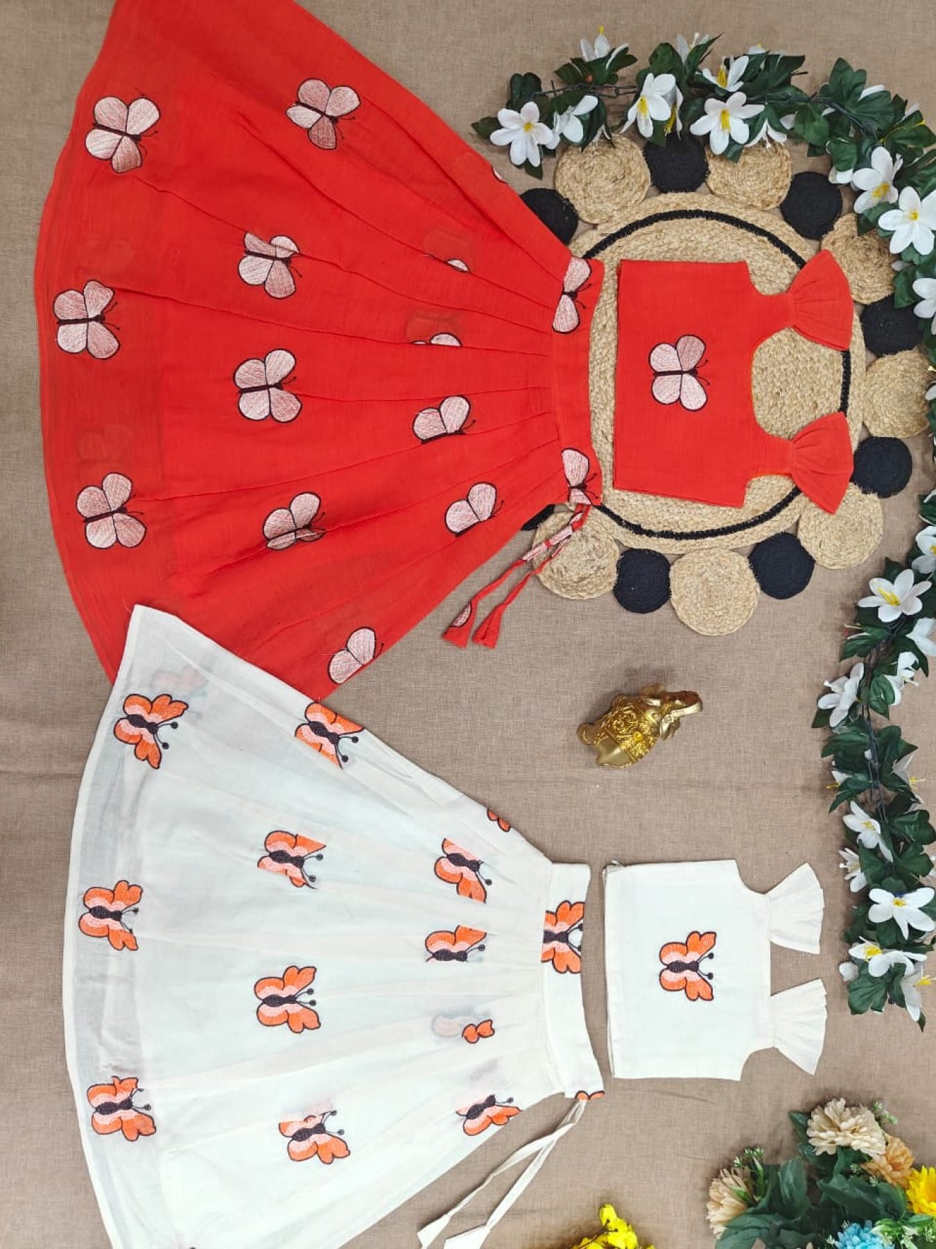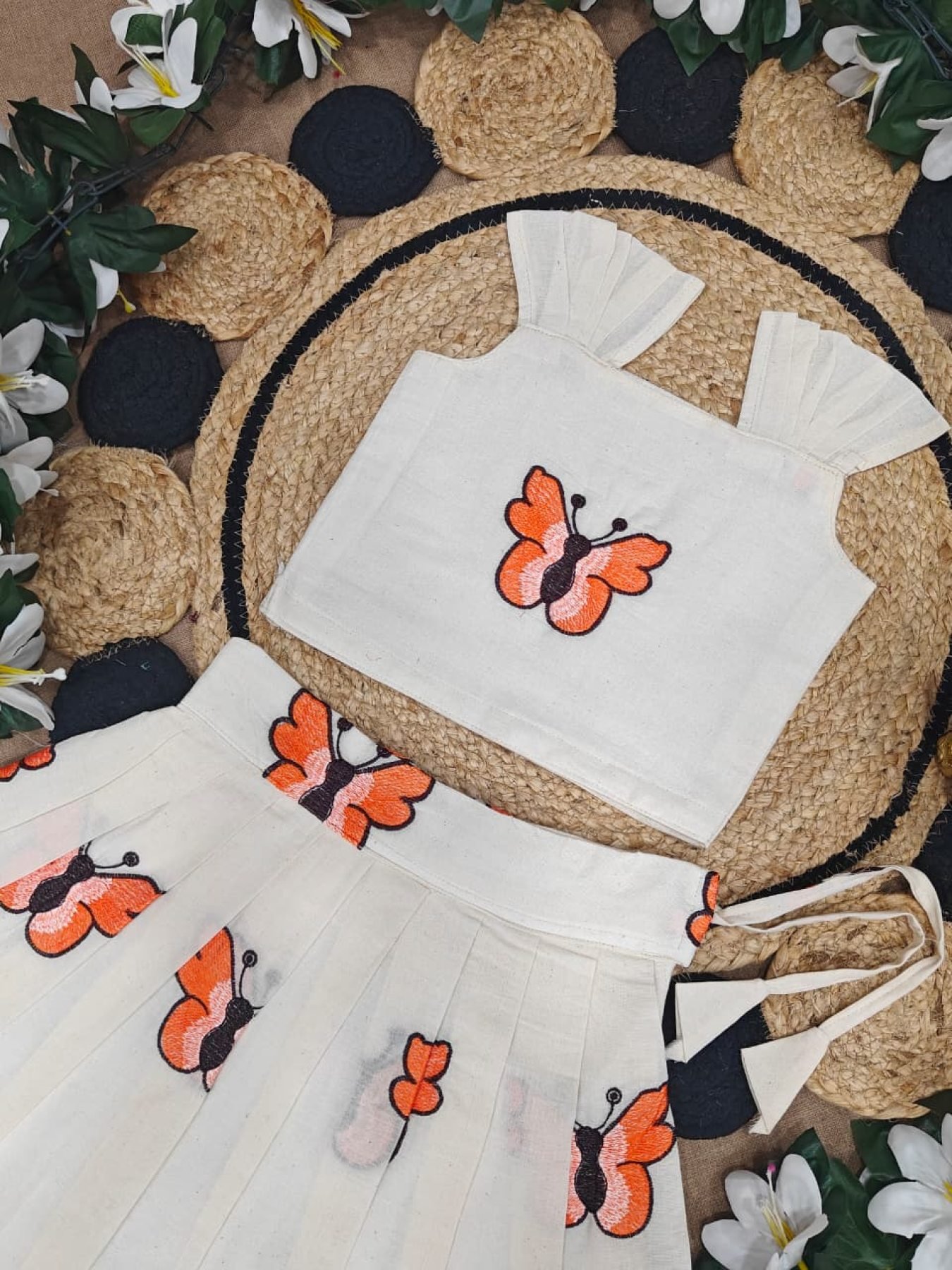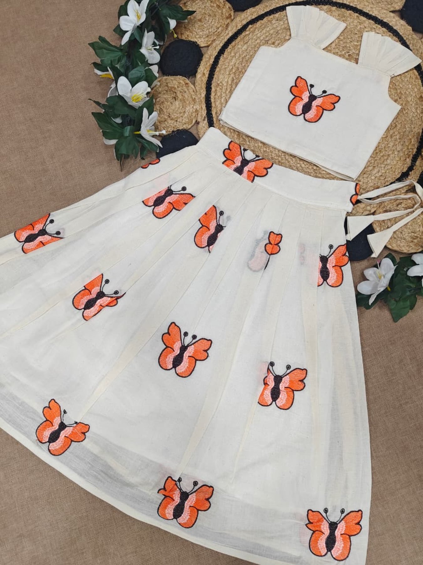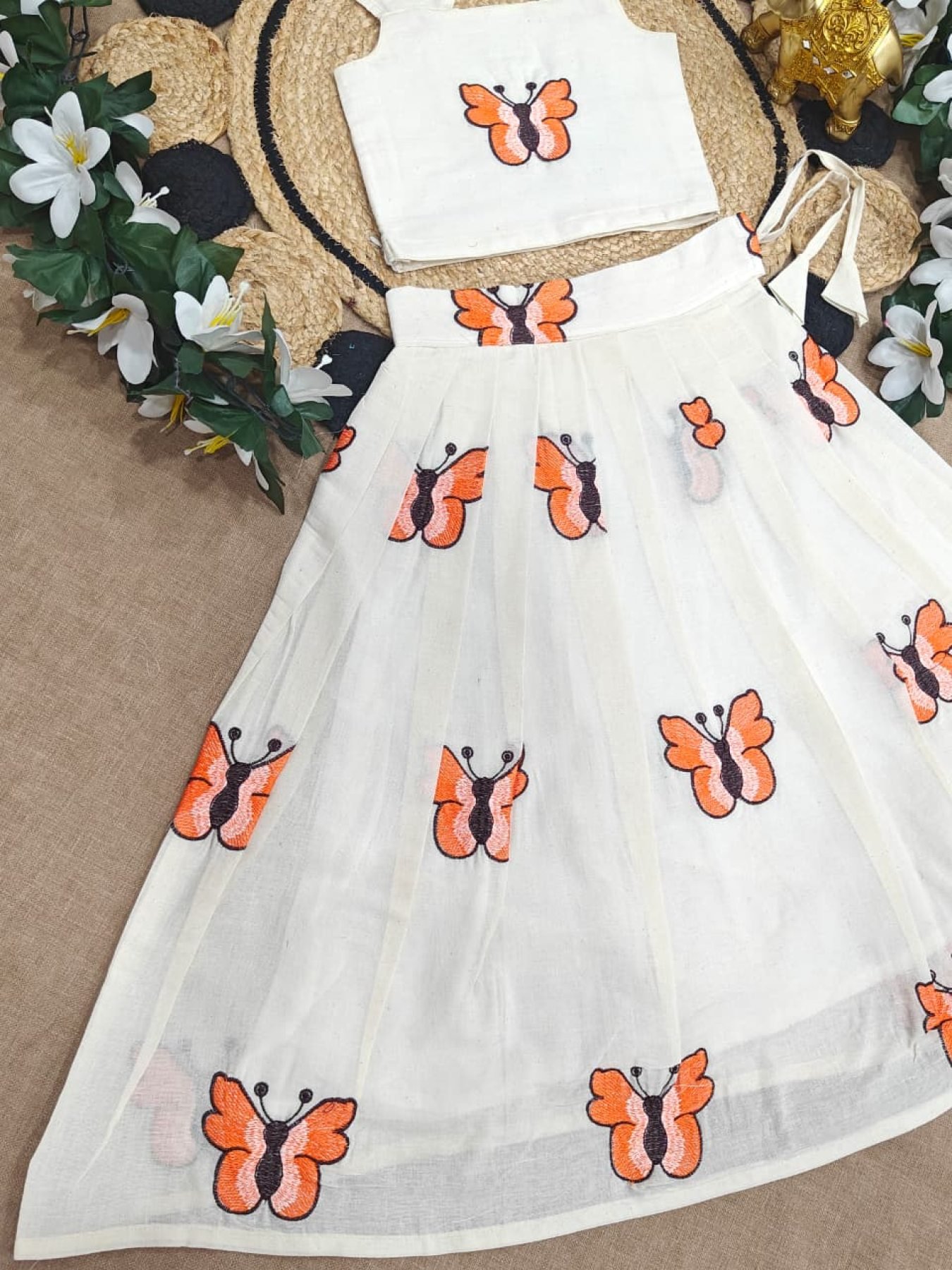 Lightweight cotton kids lehenga set featuring beautiful embroidery with comfortable lining and zip closure blouse. Perfect for summer, festive, and party wear.