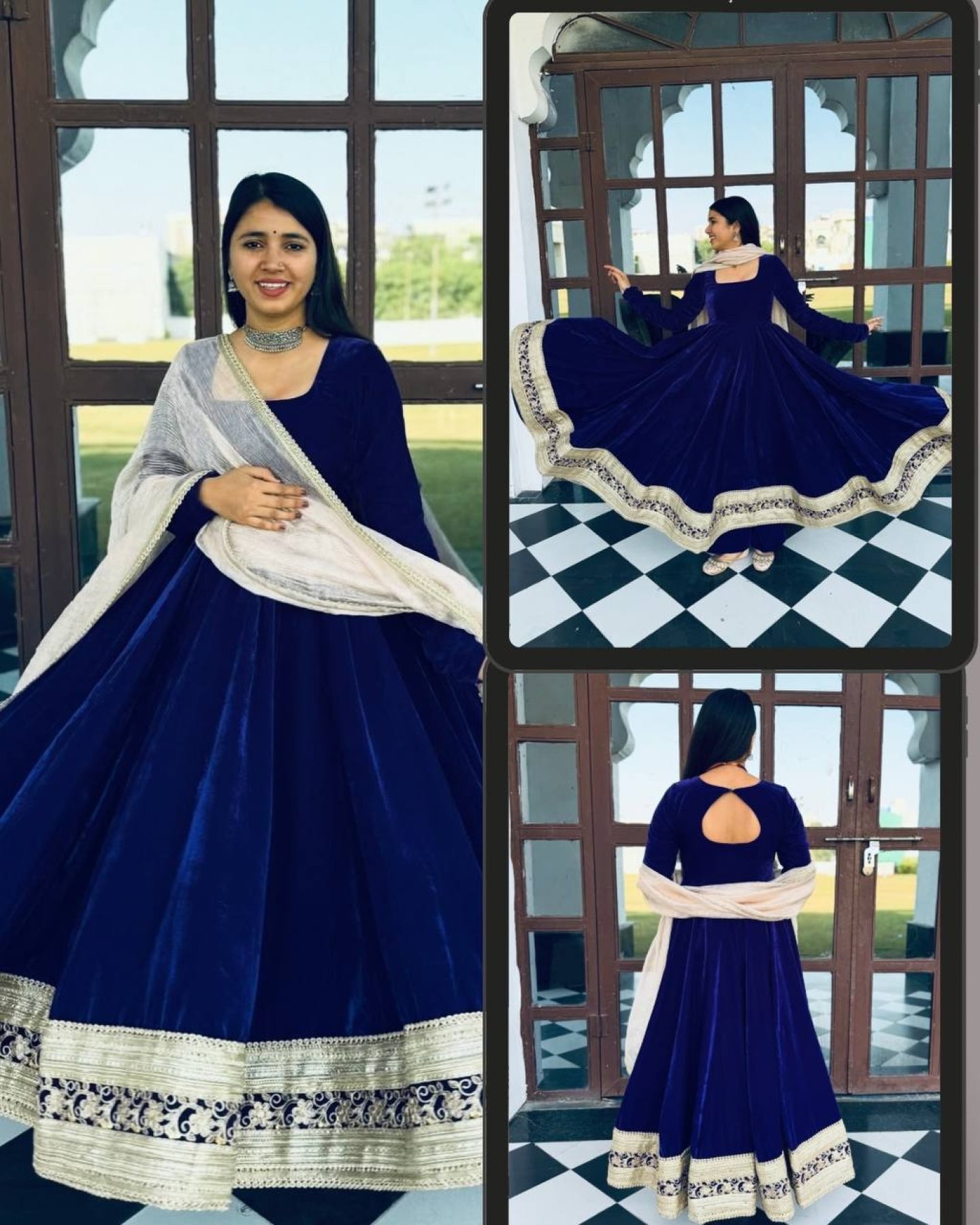 Size ChartElevate your festive and party wear collection with this premium velvet Anarkali suit set, designed for timeless elegance and comfort. Crafted from heavy viscose velvet, the Anarkali top features rich embroidery with subtle detailing, complemented by fully embroidered sleeves for a refined look. The set includes a matching velvet pant and a soft, flowy sanderi silk dupatta with minimal work for balanced luxury. An ideal choice for festive celebrations, evening parties, and boutique collections, perfect for wholesalers and international buyers.