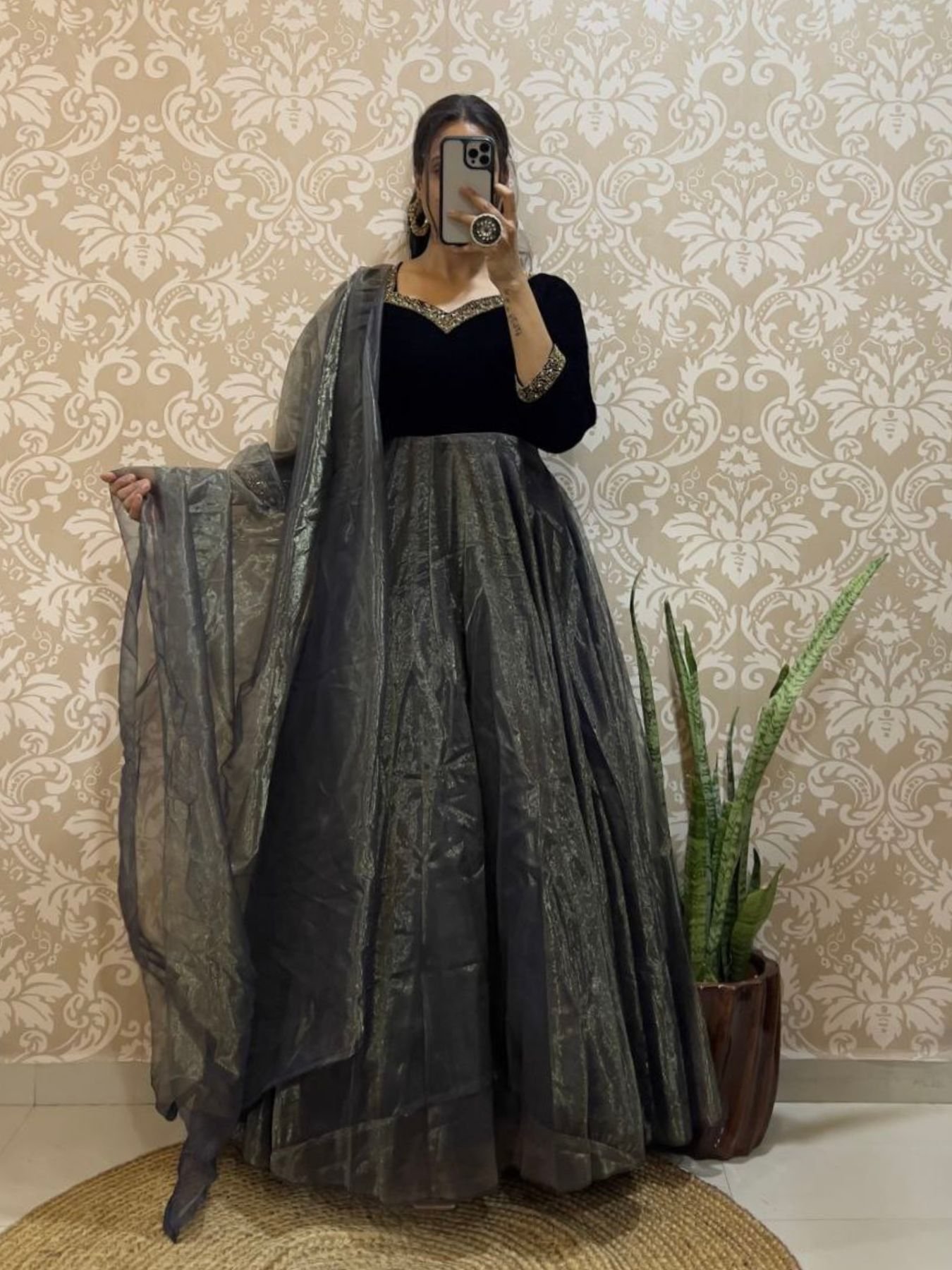 Premium 9000 Velvet Gown with Hand Work & Cut Work Dupatta