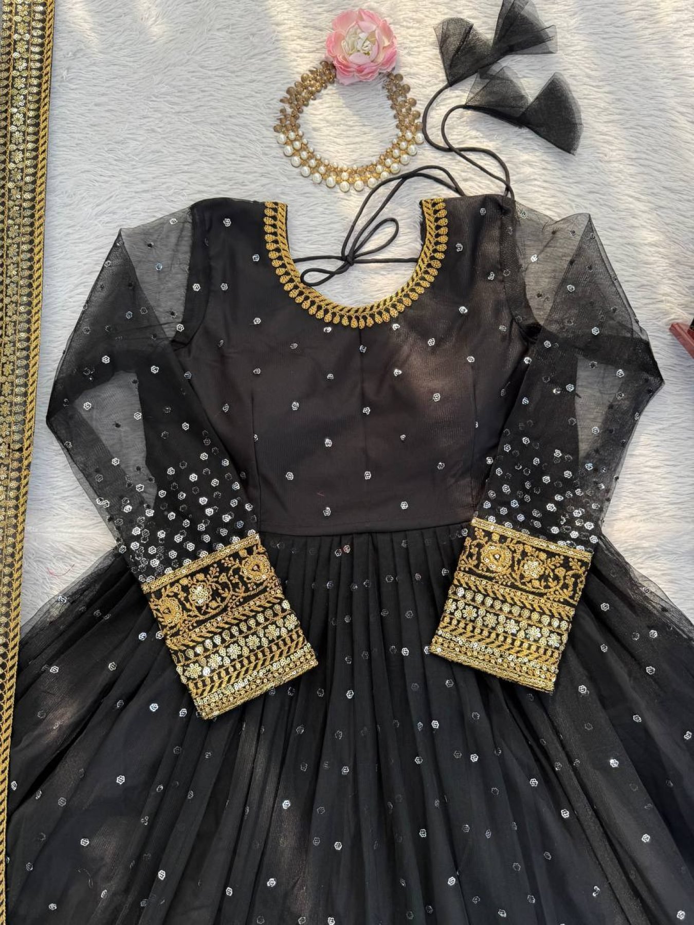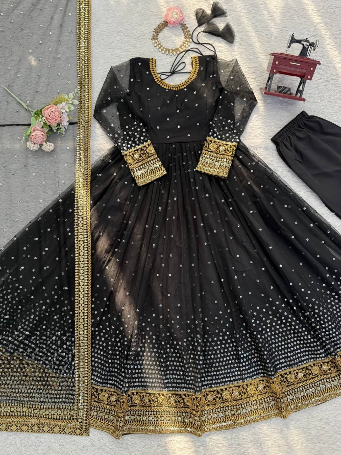 Luxurious Black Butterfly Net Anarkali And Thread with Sequence Work Dupatta