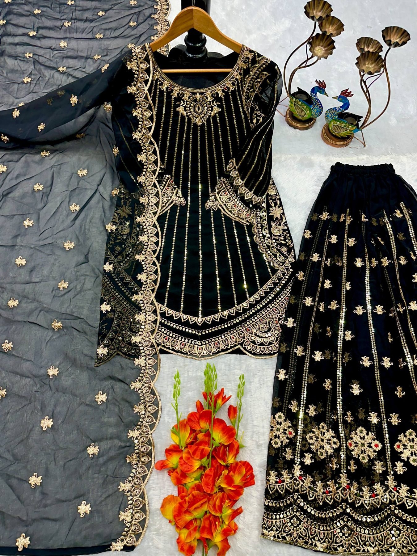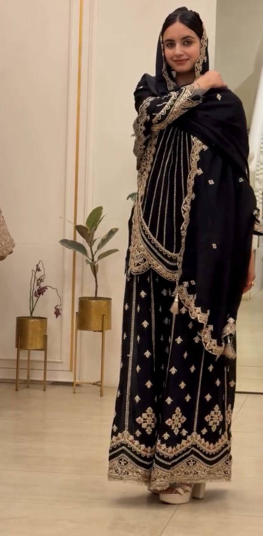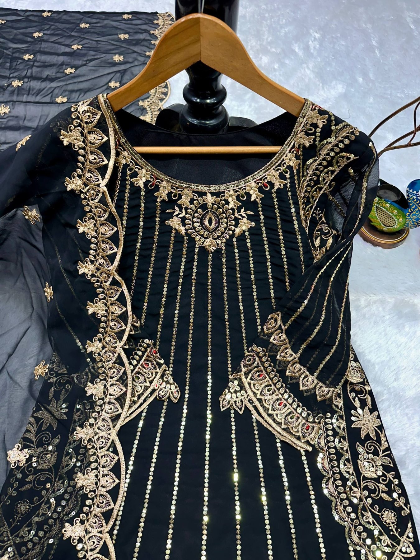 Luxurious Black Ethnic Outfit with Zari Sequins Embroidery For Special Occasions