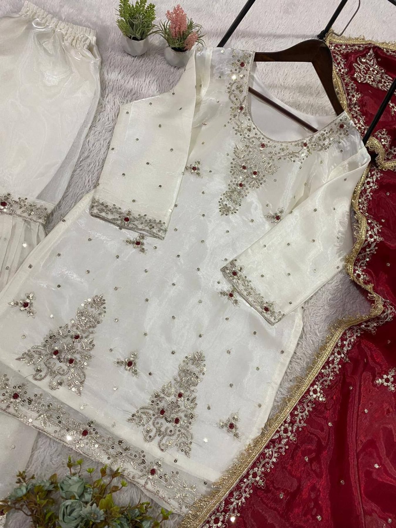 Luxurious White Fandy Silk Sharara Suit with Sequins Embroidery for Wedding Wear