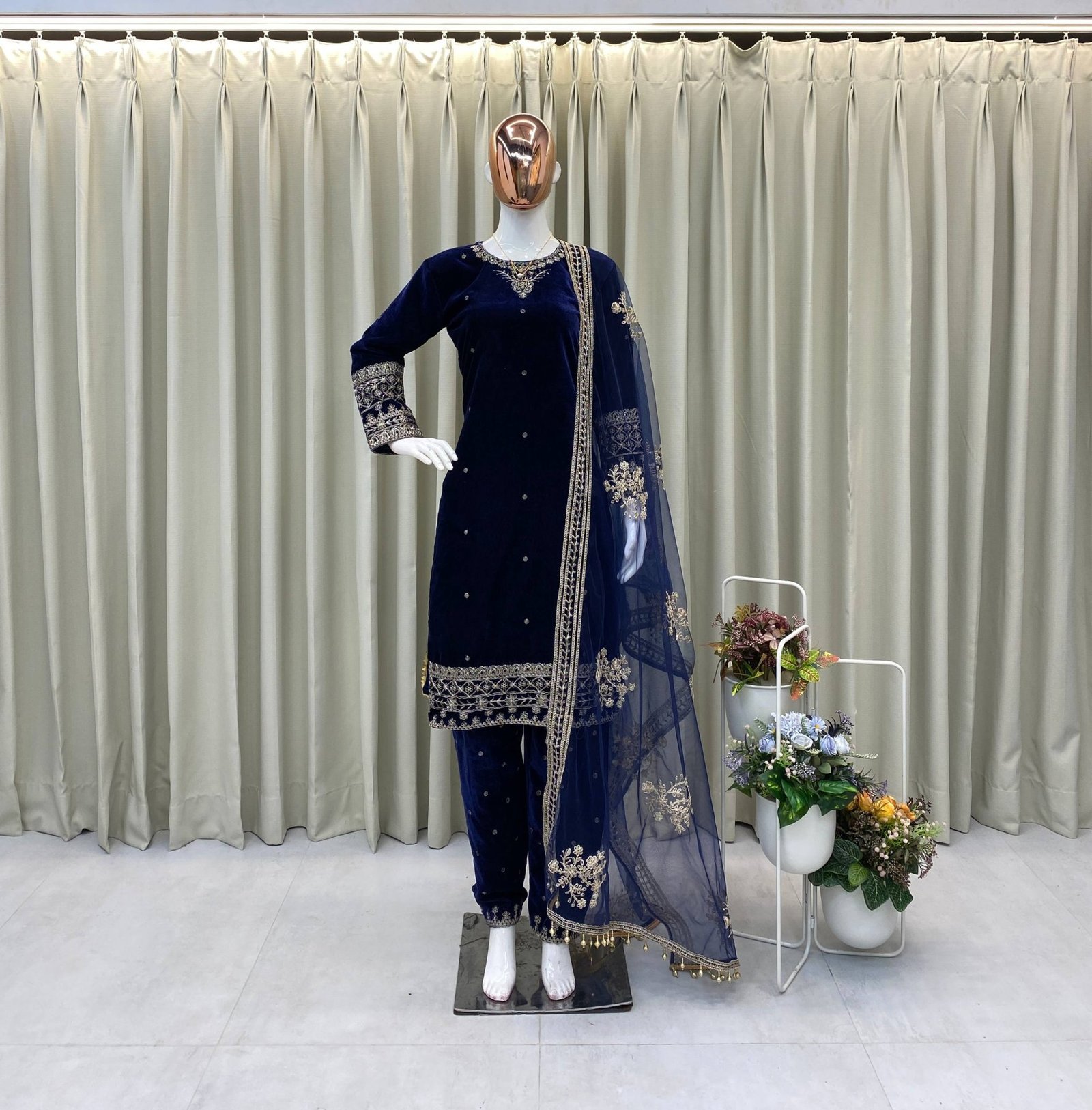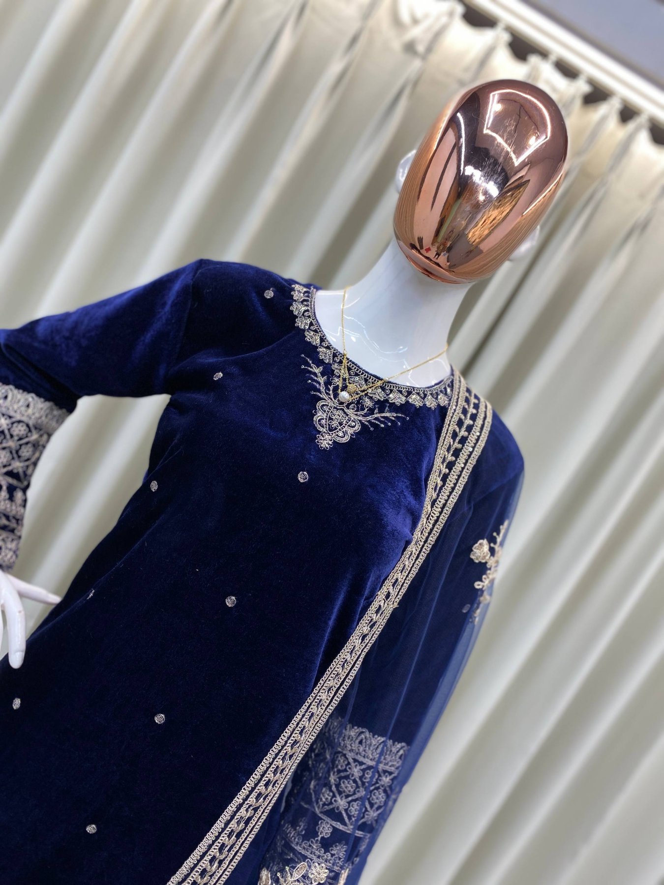 Experience luxury with this premium velvet suit set featuring rich sequin embroidery and a soft micro inner for all-day comfort.